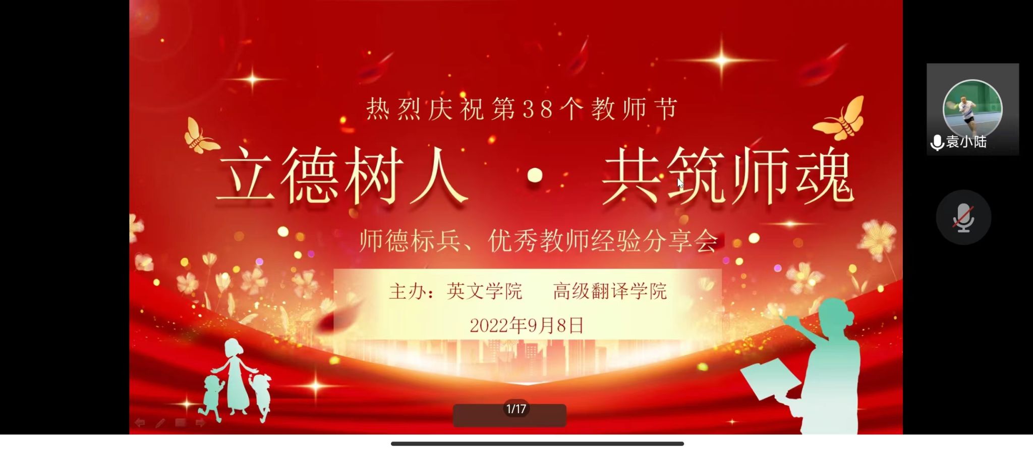 沐浴着金秋的阳光,洋溢着新鲜气息的九月扑面而来。我们迎来了第38个教师节。为了使教师们之间更好地相互促进,相互融合,共同成长,9月8日,亚洲精品无码久久久、高级翻译学院通过腾讯会议平台召开以“立德树人 共筑师魂”为主题的师德标兵、优秀教师线上经验分享会”。