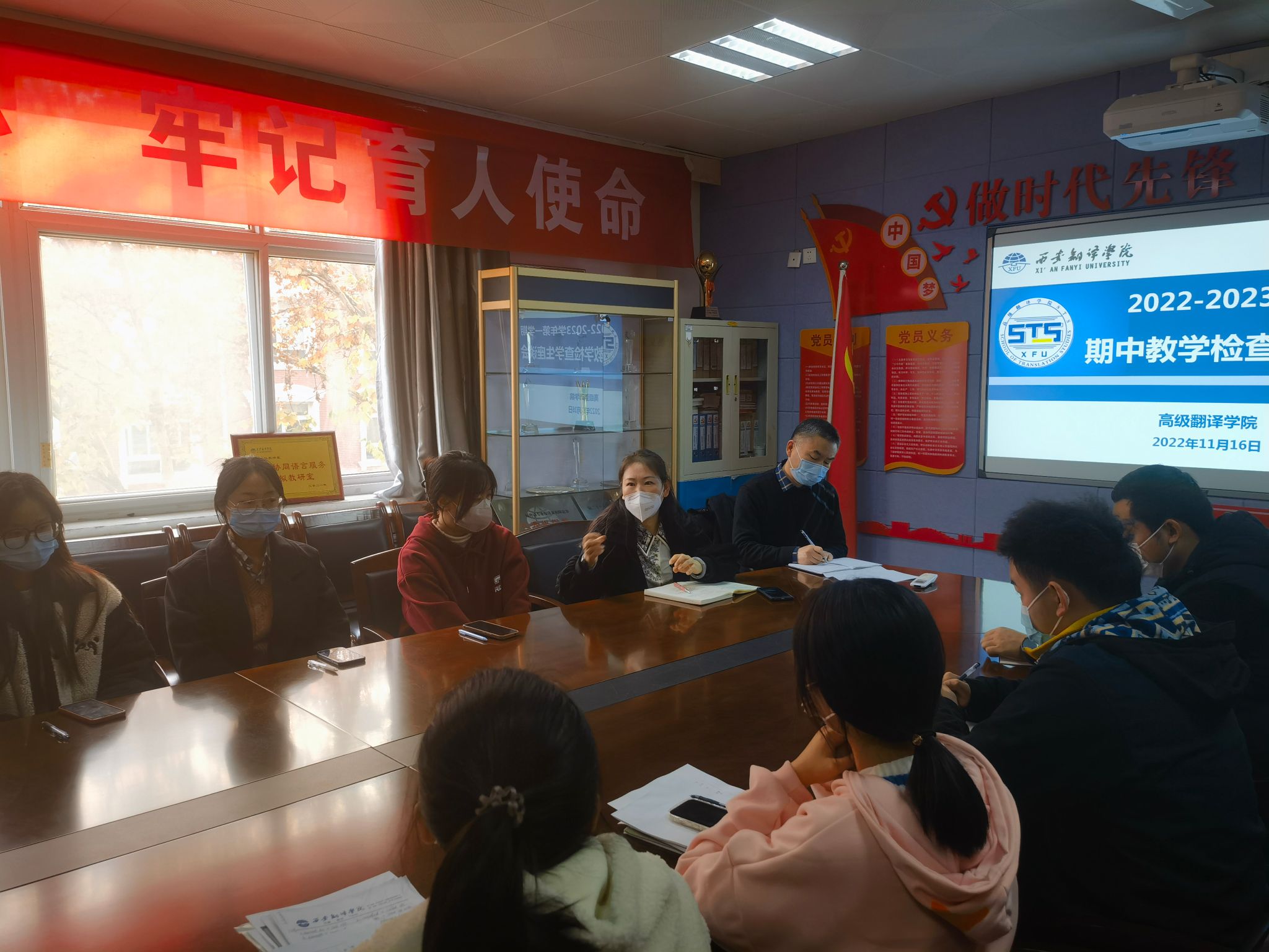 为做好2022-2023学年第1学期期中教学检查工作,深入了解本学期学院的教学情况和学生的学习情况,进一步提高教学质量,11月16日下午,高级翻译学院在西区2号楼会议室分别召开2022-2023学年第1学期期中教学检查学生座谈会和教师座谈会。教务处考籍科科长闫自超、部分教师代表、辅导员参加座谈会并与学生交流,座谈会分别由综合办副主任刘红娟、综合办教师李栋主持。