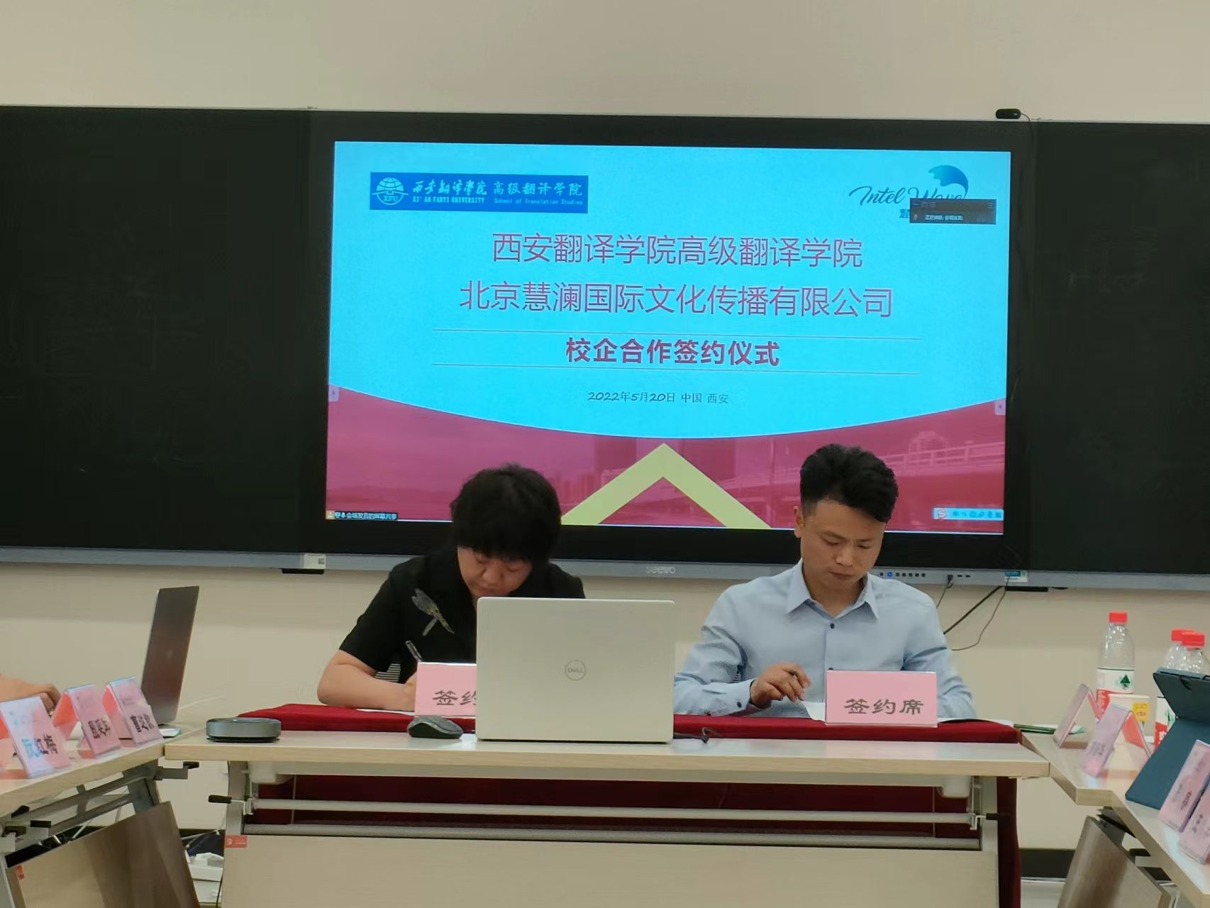 在此次活动中,我院与北京慧澜国际文化传播有限公司签署了校企合作协议,通过此次合作,一方面同陕西各兄弟院校加强合作,助力陕西文化对外传播,另一方面,为我院学生提供更多的实习实践机会,大力推进我校一流专业建设,持续提升专业水平,切实提高翻译本科人才培养质量。