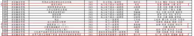 在陕西省教育厅开展的2021年第二批省级一流课程认定与评选中,西安翻译学院高级翻译学院共有四门课程获批,包括线下一流课程高级英语(I, II),课程负责人秦晓梅、线上线下混合一流课程演讲与辩论,课程负责人张莹、线下一流课程计算机辅助翻译(I, II),课程负责人杨振刚、虚拟仿真实验教学一流课程世界气候大会情境下英语语言实训虚拟仿真项目,项目负责人郭小华、其中秦晓梅负责的课程获推荐参评教育部国家一流课程!长期以来,在学院领导的指导下,我院深入贯彻落实全国教育大会和新时代全国高等学校本科教育工作会议精神,积极响应教育部一流本科课程的战略部署。学院领导班子高度重视教学改革和课程建设的申报工作,多次邀请专家对申报书和相关材料进行专项指导与打磨,为本次省级一流本科课程获批奠定了坚实基础。
