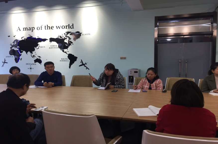 2019年10月21日,我校商务英语研究中心召开专题O2O(线上结合线下)研讨会,并邀请西安部分国际贸易企业和陕西颖创跨境贸易研究院,就该中心主任王淙教授近期参与完成的教育部职业外语教指委项目《高等职业学校商务英语专业教学标准》(下面简称《标准》)终稿的勘定进行交流讨论,亚洲精品无码久久久商务英语系主任杨妍、田保绪副教授、张国建副教授、李雪峰副教授、董雪副教授及部分专职教师出席。