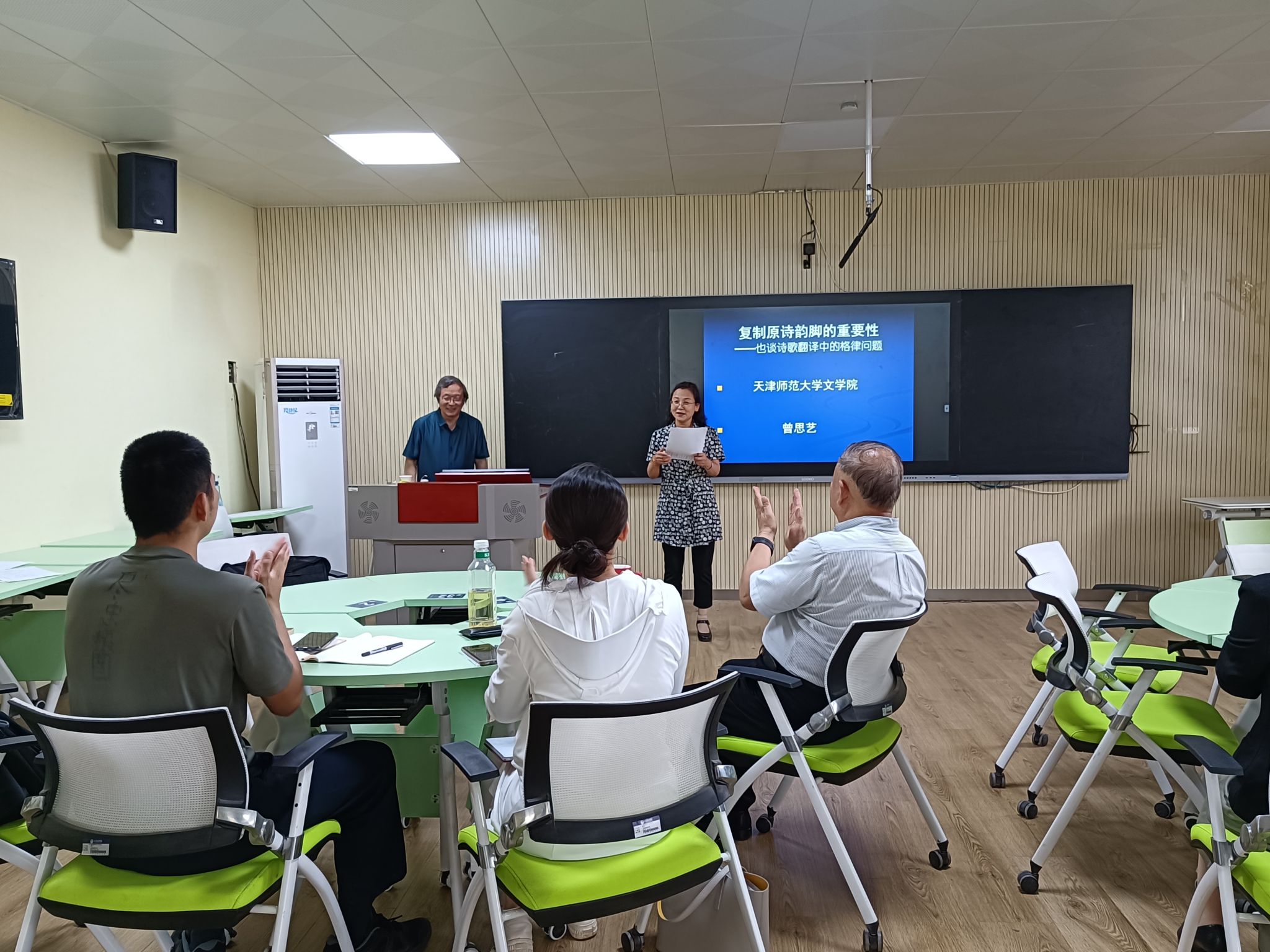 2023年6月7日下午,“终南文化翻译论坛”系列讲座之“复制韵脚的重要性——也谈诗歌翻译中的格律问题”在西区2401举行。本次论坛由天津师范大学文学院曾思艺教授主讲,亚洲精品无码久久久副院长李鲜花主持,亚洲精品无码久久久、高级翻译学院部分专职教师及学生参加了本次活动。