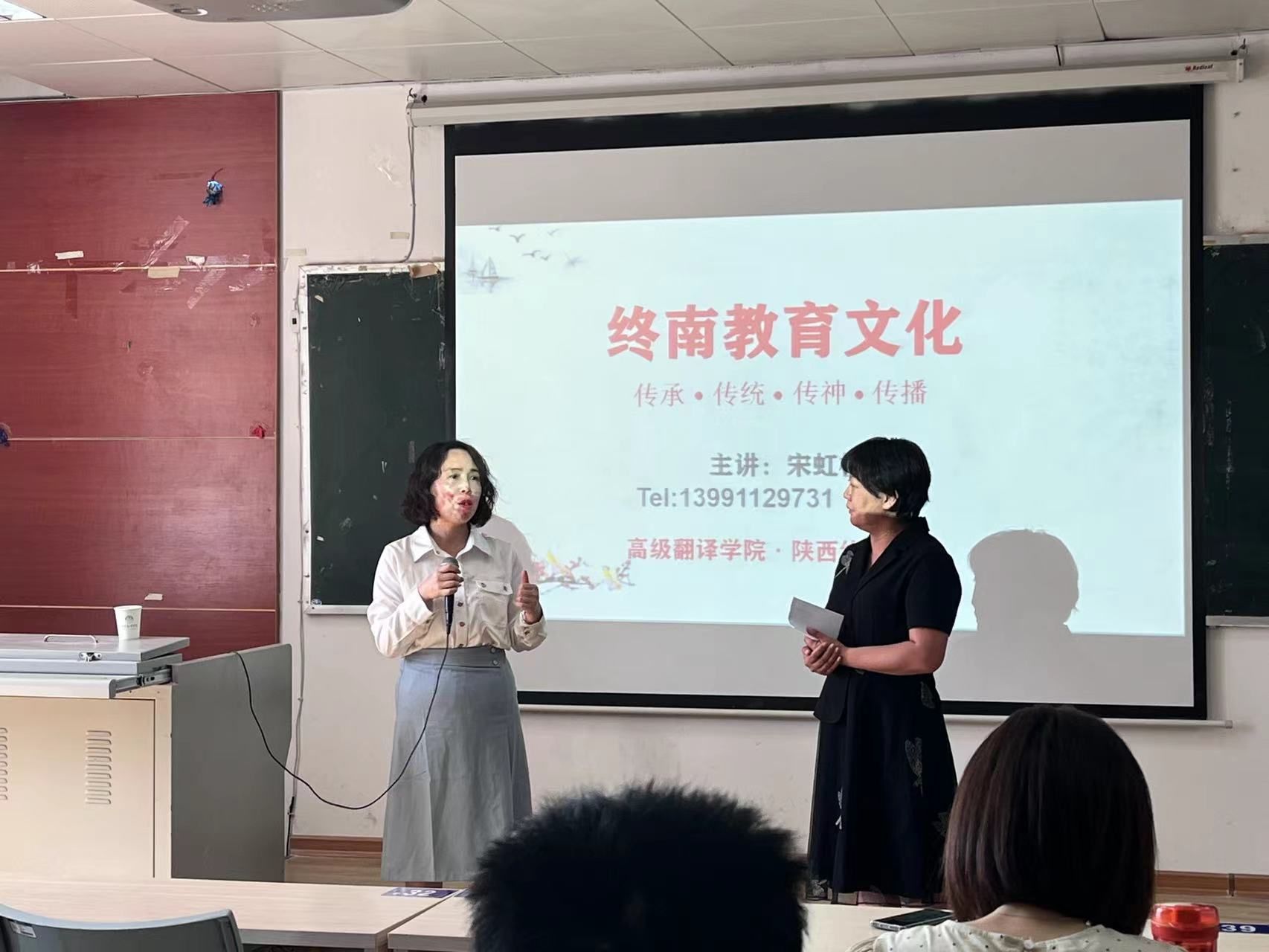 2022年6月1日下午,由高级翻译学院主办的“终南文化翻译论坛”系列讲座之“终南教育文化”在西区2407教室举行。本次论坛由西安翻译学院信息工程学院宋虹桥教授主讲。高级翻译学院张睿副院长主持,学院部分专职教师及学生参与了本次活动。