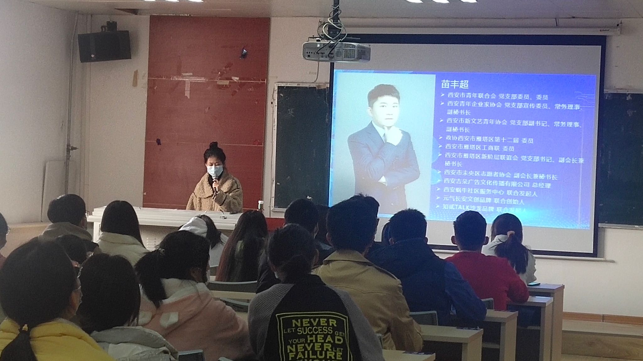为深化提升我院学生创新创业教育水平,帮助大学生了解创新创业知识,提高创新能力,激发创业热情、培养创新思维,2022年11月15日下午15:30,由西安翻译学院教务处、学工部、校友会、创新创业学院主办的创新创业系列讲座在高级翻译学院学院举办。本次讲座由创新创业学院综合办教师康欢主持,高级翻译学院80名学生代表参加本次讲座。