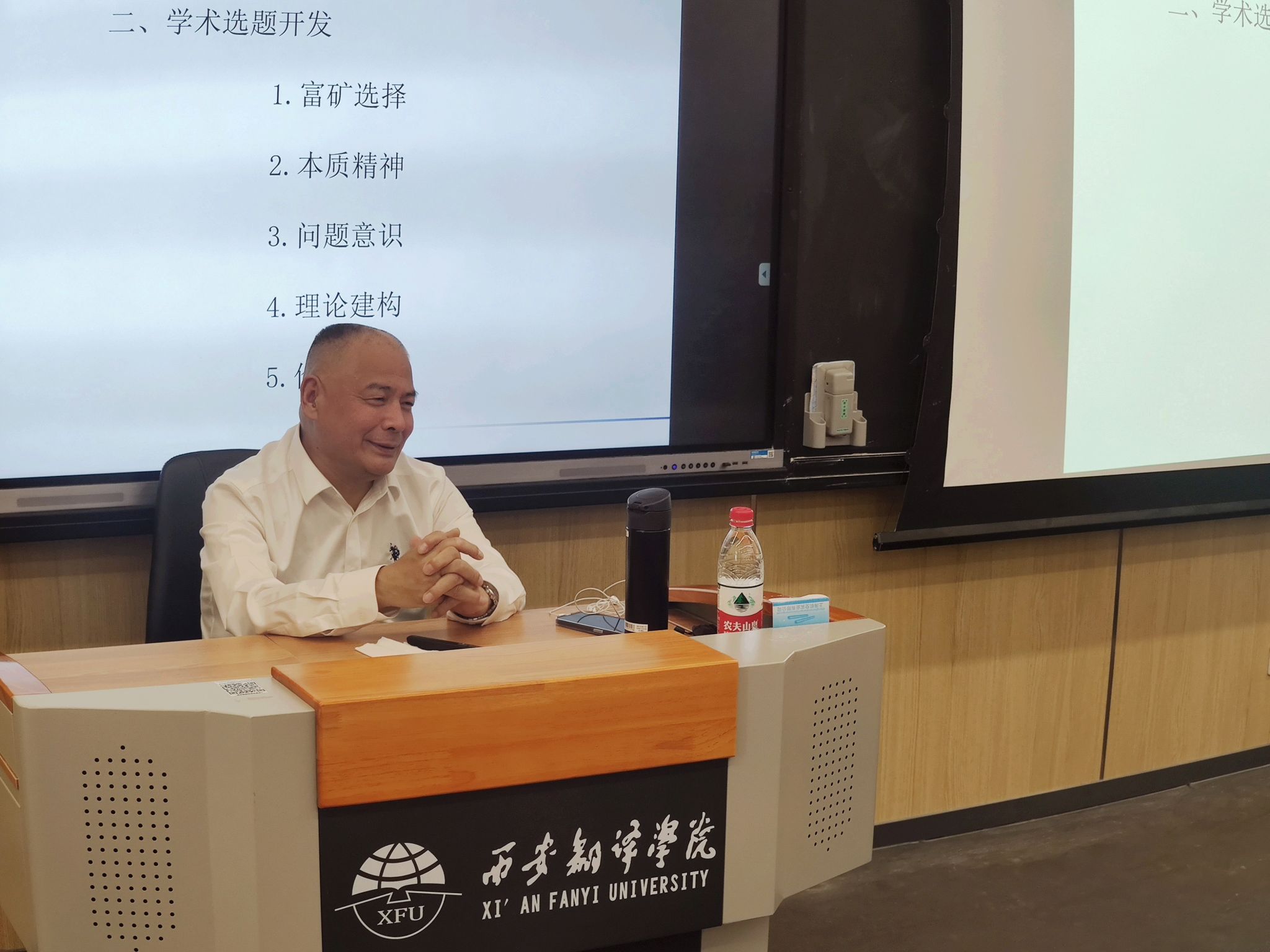 2024年5月24日下午,上海交通大学外国语学院教授、《当代外语研究》主编、语言教材研究与评估中心主任杨枫教授莅临我校作“外语论文选题、研究、写作及发表”专题讲座。本次讲座由西安翻译学院亚洲精品无码久久久、西安翻译协会、非洲研究中心、校企协同语言服务虚拟教研室、译创语言服务现代产业学院联合主办,亚洲精品无码久久久100余位教师代表参加,讲座由亚洲精品无码久久久李鲜花教授主持。