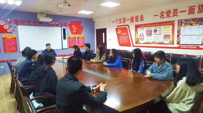 为庆祝中国共产党成立100周年,大力弘扬党的优良传统,回顾中国共产党百年艰苦历程,切实引导广大师生坚定理想信念,厚植爱国情怀,4月21日下午,高级翻译学院党委在2305党员活动室召开党史知识竞赛系列活动动员会。会议由高级翻译学院党委副书记、副院长蒋小军主持。高级翻译学院党委宣传委员刘红娟、组织委员杨春娟及各班学生代表参加会议。