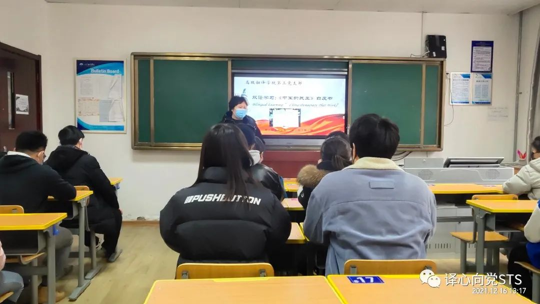 2021年12月16日(星期四)中午12:00,西安翻译学院高级翻译学院第三党支部以“文明因交流而多彩,文明因互鉴而丰富”为主题开展《中国的民主》白皮书学习。