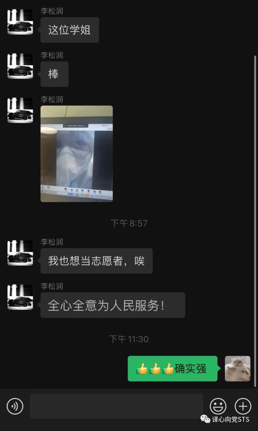 陈晓楠书记首先表达了对所有党员同志的关怀和慰问,同时表示,如今虽然疫情形势严峻,但是仍不能忘记作为一名中国共产党党员的使命和肩负的责任,我们应从我做起,从身边的小事做起,为身边的老师及同学提供力所能及的帮助,比如协调公寓老师安排事宜,安抚焦虑同学的内心。我们应将“时刻为人民服务”的宗旨牢记在心。