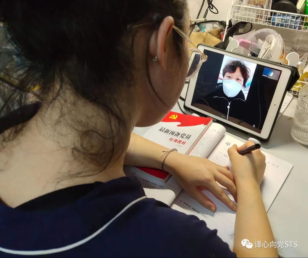 有这样一位同志,在我们会议开始时一直联系不上,到会议快要结束时,终于联系上了她。此时,会议一下子安静了下来,大家表面上平静不已,但内心却心潮澎湃!原来视频那头的18级学姐张新妍正身穿着防护服,全副武装的战斗在抗疫一线。虽然身在前线,但学姐仍觉得自己做的还不够好,做的还不够多。这才是作为一名合格党员的思想觉悟,不仅以身作则还任劳任怨,值得我们所有人学习和敬佩!