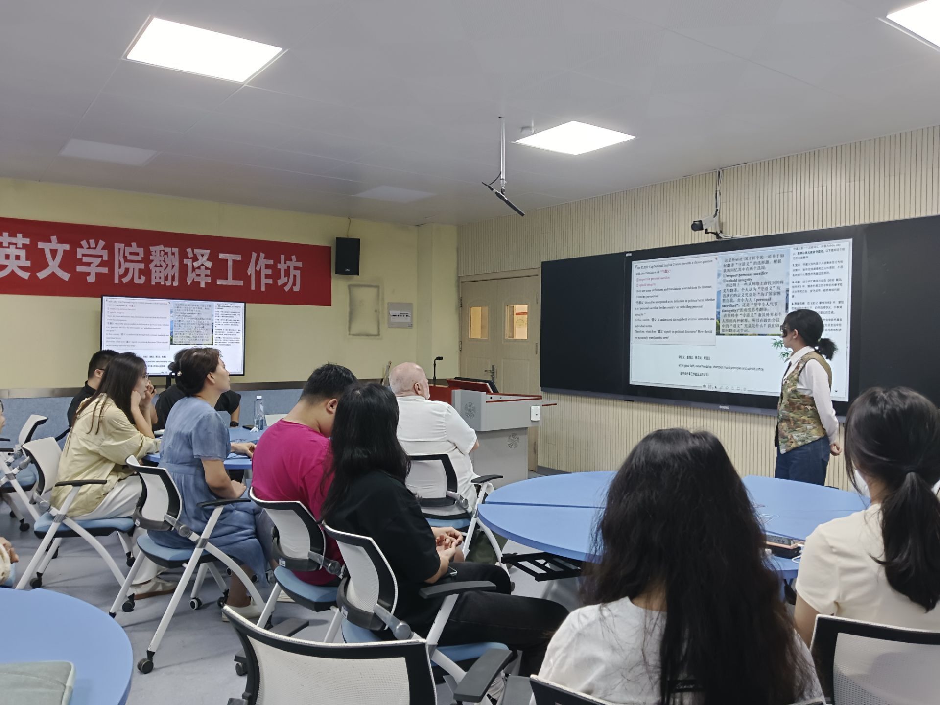 英国翻译家、西译客座教授蒲华杰分别于9月24日和26日两天下午在4108M教室,就中国文化翻译主题对亚洲精品无码久久久翻译工作坊约20名师生展开了深入而富有成效的指导和讨论活动。