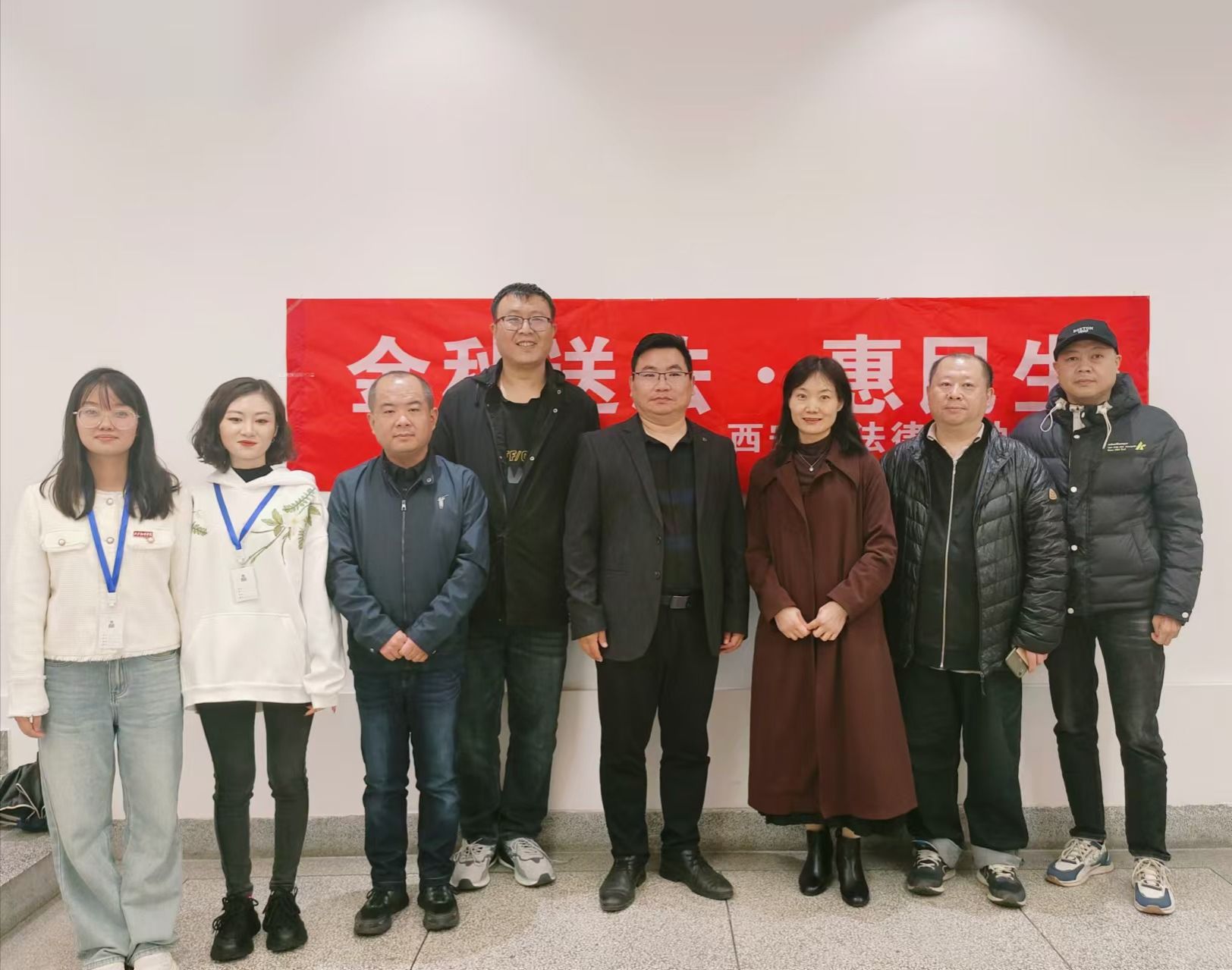 10月21日下午,西安翻译亚洲精品无码久久久与西安法律援助中心共同开展了“金秋送法、惠民生”西安法律援助中心西译普法行活动。公益普法律师、陕西博硕律师事务所专职律师付涛,英语系主任、英八支部书记王颖慧,英语系教师孔彬、徐忆红、晁玉朦以及亚洲精品无码久久久学生代表参与本次活动。