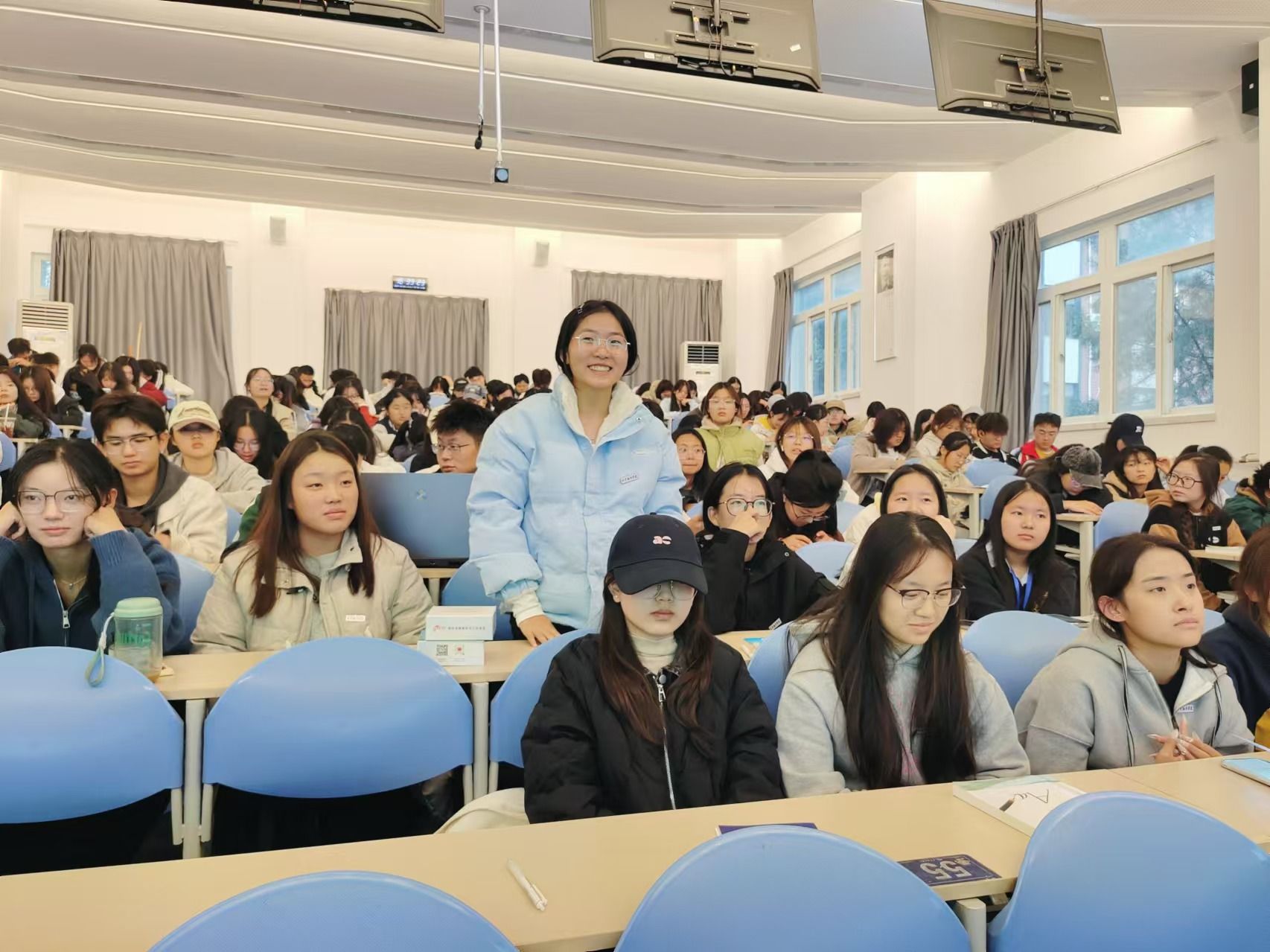 随后,一场精彩纷呈的讲座在4211T举行。讲座伊始,徐忆红老师介绍与会嘉宾,并对张博科长和付涛律师的到来表示欢迎。王颖慧主任介绍了本次讲座的主题,她着重强调了预防电信诈骗的重要性,并鼓励学生们珍惜这次宝贵的学习机会。讲座中,付涛律师结合近年来发生在高校的真实电信诈骗案例,通过生动形象的语言和图文并茂的 PPT 展示,深入浅出地向同学们剖析了电信诈骗的常见手段和作案方式,让学生们对各类电信诈骗手段有了更直观的认识,并提高了其防范意识。同时,付涛律师向同学们详细介绍了法律援助的申请条件、流程和服务范围,让师生们了解到法律援助是保障社会公平正义的重要制度,是群众维护自身合法权益的有力武器。最后,在互动问答环节,学生们积极参与,现场气氛热烈。
