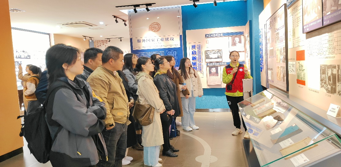 在“溯源”展馆,师生党员们通过一件件珍贵的革命文物和一张张泛黄的历史照片,了解了交通大学的前身与早期发展历程。这些展品不仅展示了交通大学深厚的文化底蕴,更为后续西迁的壮举铺垫了历史背景。