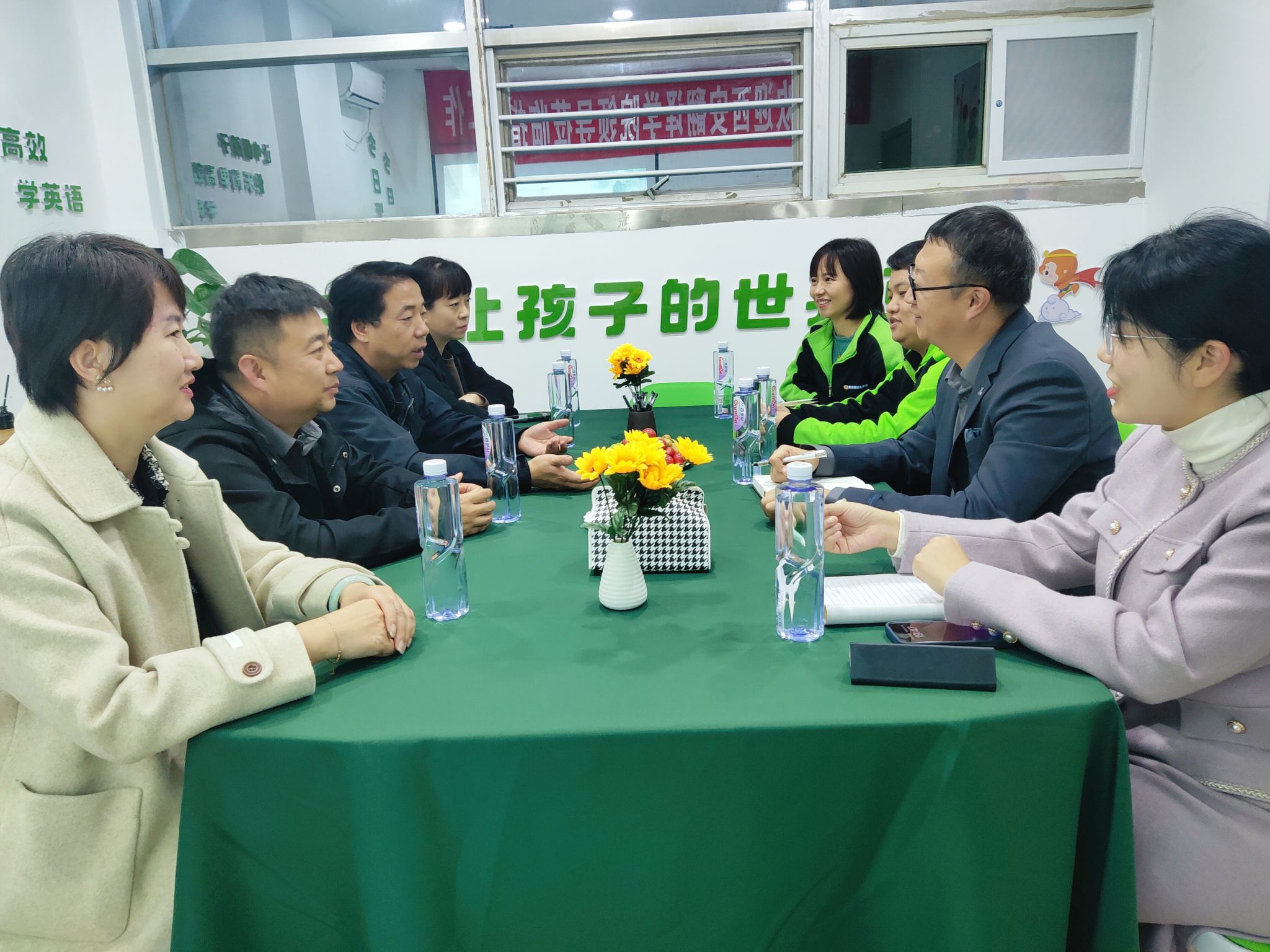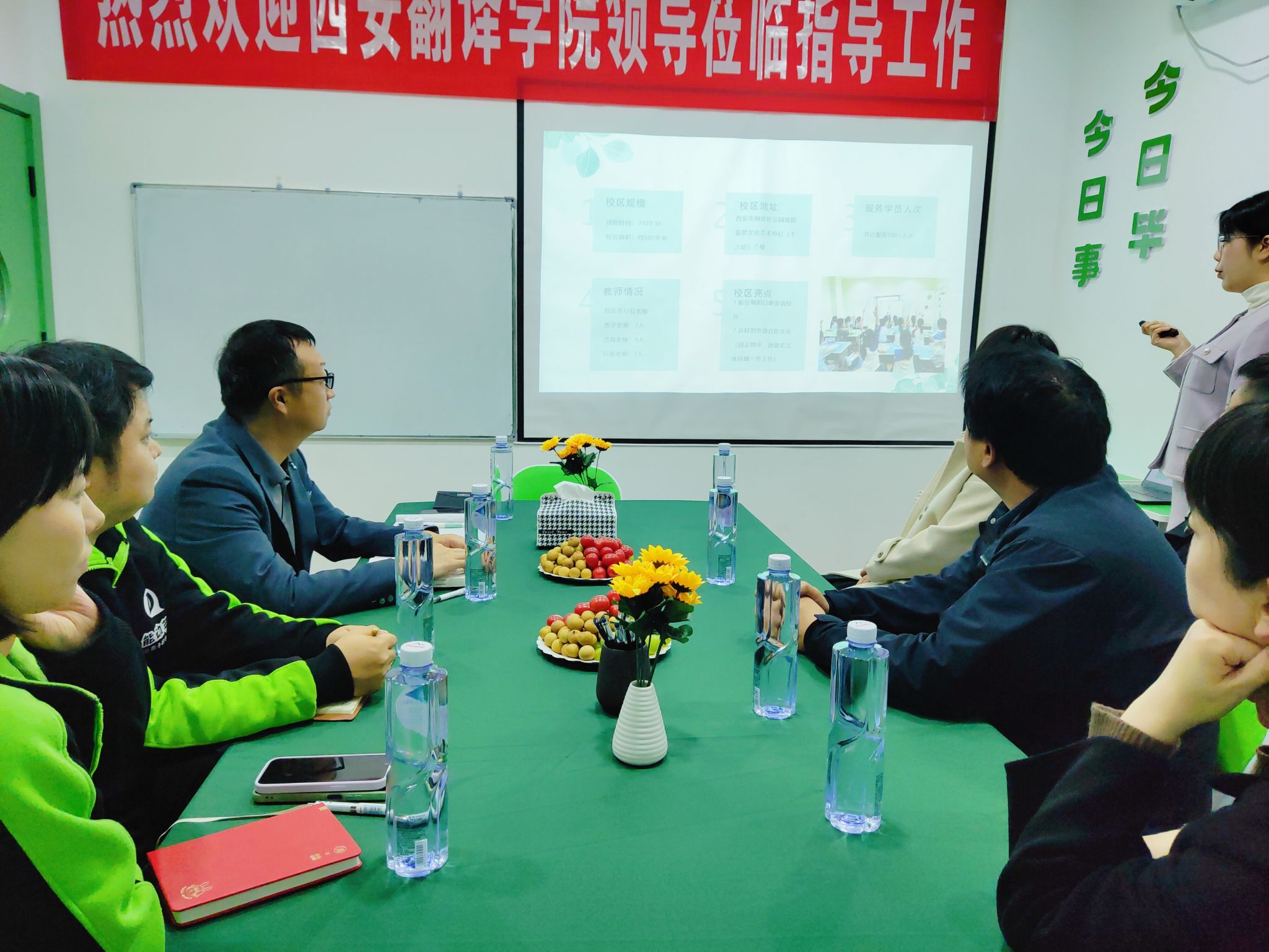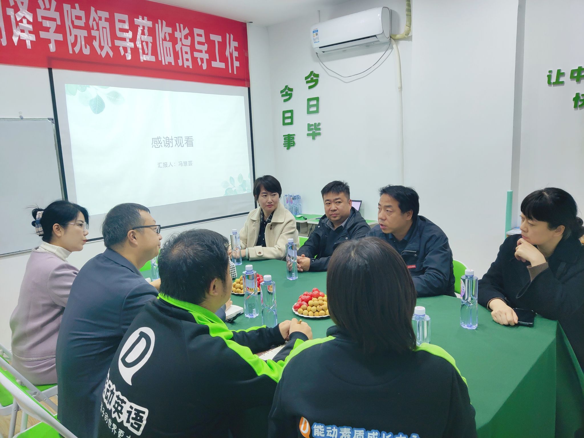 11月15日晚,西安翻译学院亚洲精品无码久久久党委书记、副院长蒋小军,综合办副主任曾维民,毕业班就业联络人魏婧以及辅导员刘媛媛一行四人,到访睿德乐思集团旗下能动英语西工大校区,旨在进行访企拓岗活动,进一步拓宽学生实习和就业渠道。
