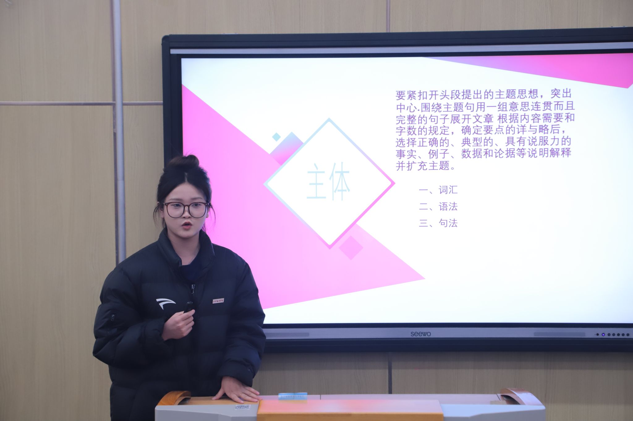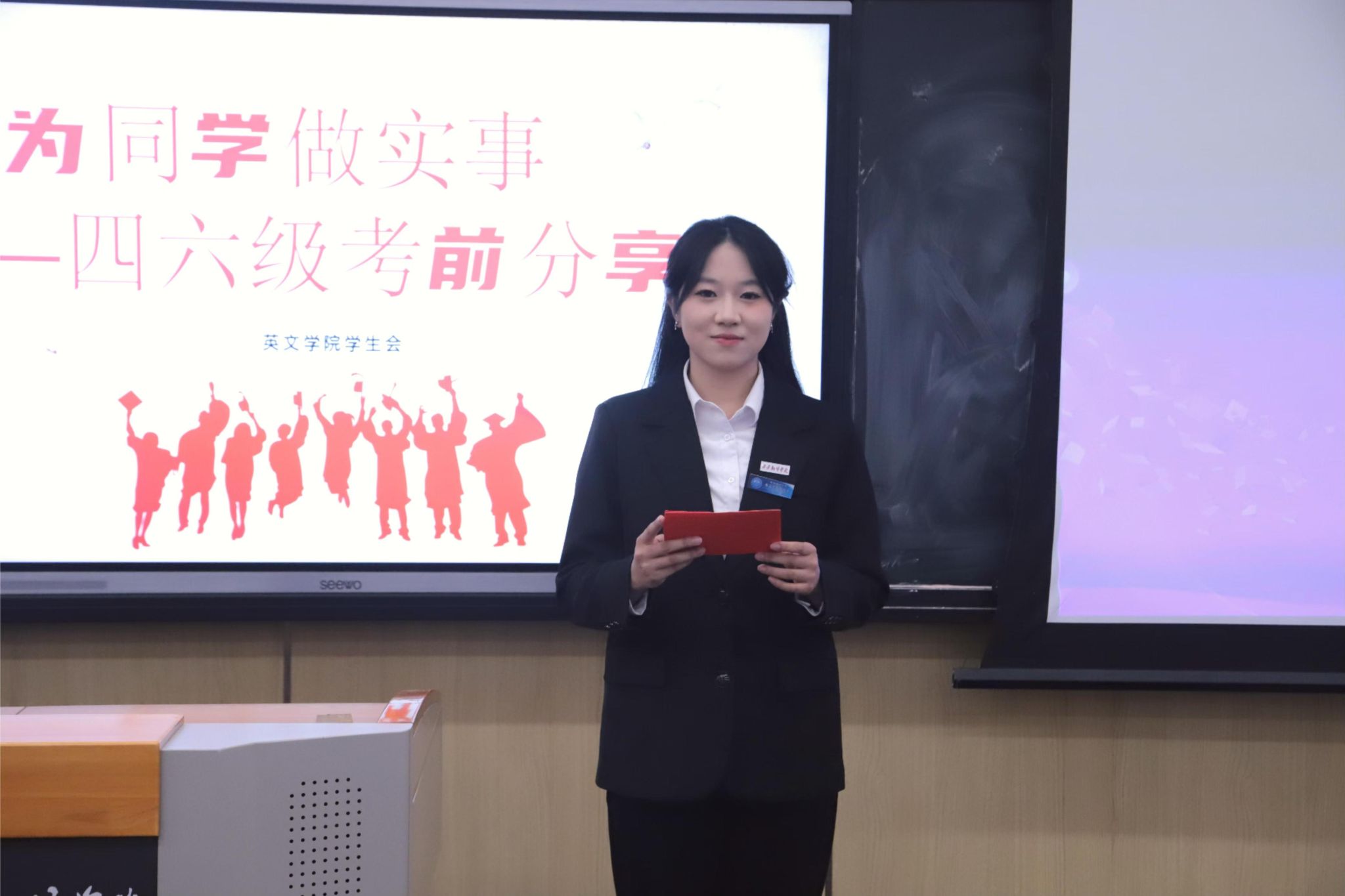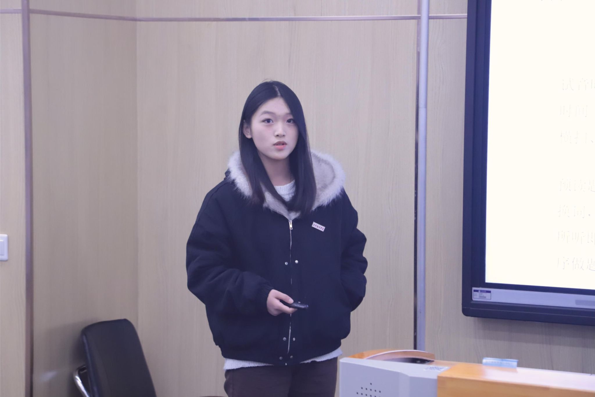随后,由亚洲精品无码久久久22级英语专业语言服务方向叶书萍学姐上台分享。她结合自身学习经历,着重强调备考技巧的重要性。先是点明合理规划备考时间乃成功关键,提议制定分阶段、设明确目标的学习计划来稳步提升英语能力。在词汇积累上,分享词根词缀、联想记忆法,强调语境作用,倡导在阅读、听力中积累词汇。针对听力理解,介绍预读题目、抓关键词等技巧,还推荐英语广播、电影、TED演讲等优质听力资源助力提升。