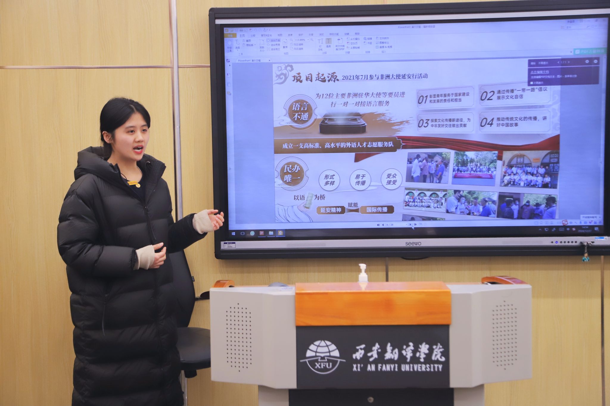 接着,副院长张睿宣读表彰决定,本次表彰涵盖国家级项目 3 项、省级项目 17 项、校级项目 39 项所涉及的 59 个获奖团队中的 316 位学生,以及 5 位在双创指导和组织过程中表现突出的教师。其中,在中国国际大学生创新大赛(2024)、“挑战杯”大学生创业计划竞赛、首届语言服务创新创业大赛决赛、2024 年大学生新文科实践创新大赛等诸多赛事中,学院师生均载誉而归。
