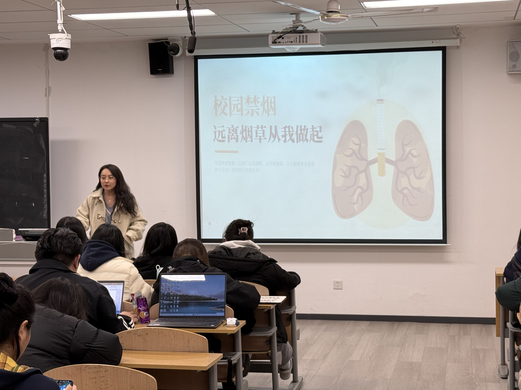 班会在一系列深入浅出的讲解中拉开序幕。各班辅导员通过引用了世界卫生组织《烟草控制框架公约》的相关内容,并结合我校具体的校园禁烟条例,为同学们描绘了一幅无烟校园的美好蓝图,深刻阐述了这一举措对于学生身心健康和优良学风构建的不可或缺性。紧接着,辅导员们分享了各自遇到的真实案例,这些生动的故事如同一面面镜子,映照出吸烟带来的种种负面影响,进一步激发了同学们内心深处拒绝烟草、守护自身及他人健康的强烈意愿。