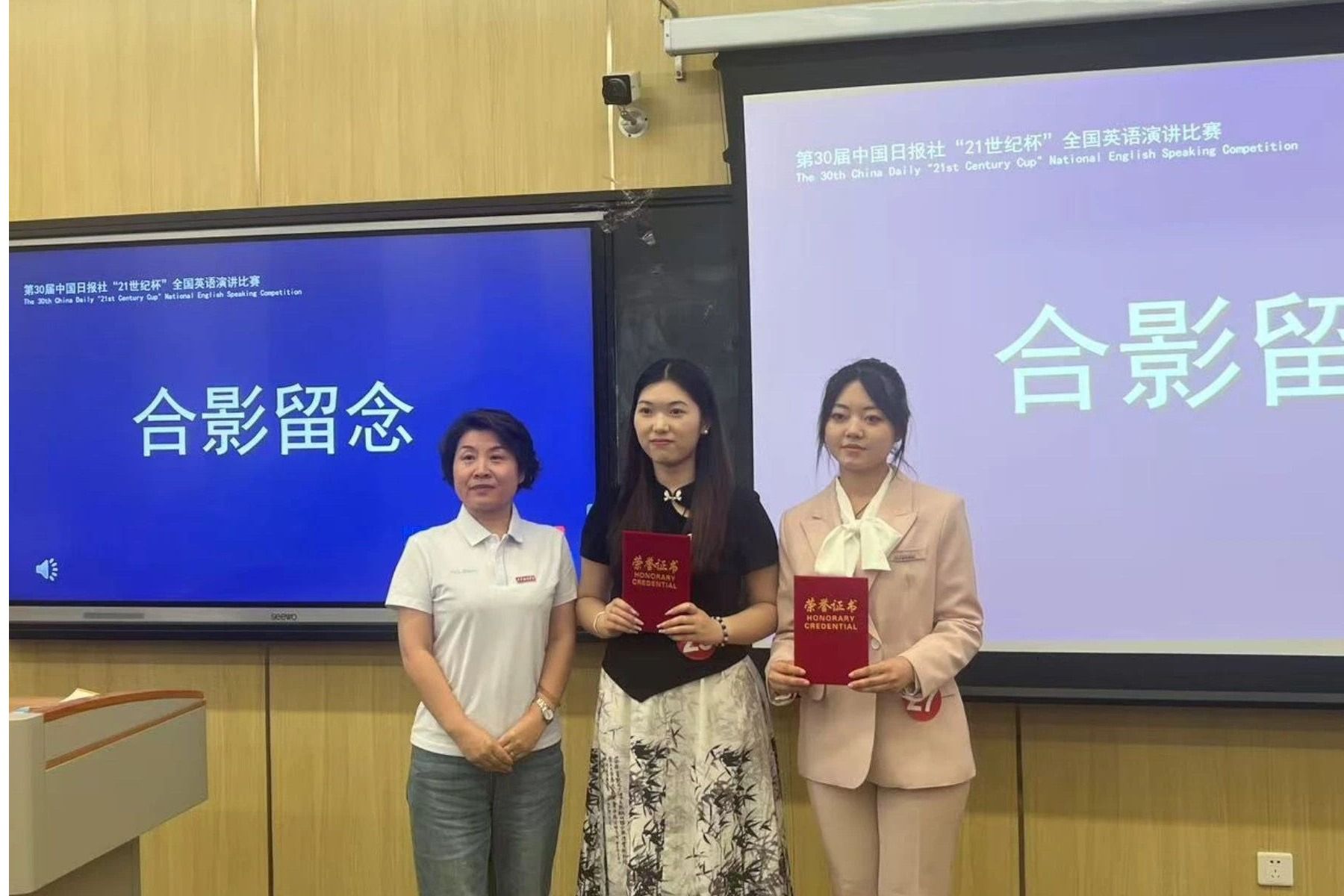 4月28日下午,第30届中国日报社“21世纪杯”全国大学生英语演讲比赛XFU校园选拔赛决赛在西区圆满落幕。本次比赛由教务处主办,亚洲精品无码久久久承办,英语语言实践工作坊SLG团队协办。邀请外校教授高洋、高芬、王静以及我校外籍教师Mr. Dirk和Mr.Brown担任评委。教务处教学实践科科长赵鑫、亚洲精品无码久久久副院长李燕、院长助理简实、综合办主任徐阳以及英语语言实践工作坊的老师们出席了本次比赛。