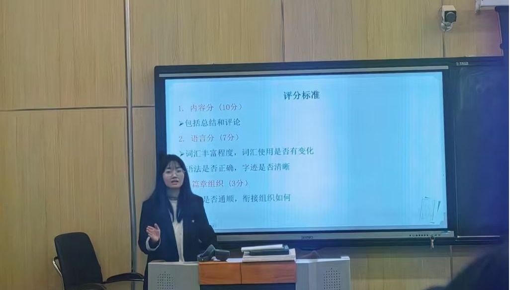 首先,晁老师以往年真题为具体案例,全面而详细地解读了专四写作的结构脉络与行文要点,找出了其中的失分点与对应的解决策略。她强调在写作前,学生应充分审题,明确文章的主题和结构;在写作过程中,要注重段落之间的衔接和过渡,确保文章的逻辑性和连贯性;在语言表达上,要注意使用准确、地道的词汇和句型,避免语法错误和表达不清。晁老师的细致讲解为同学们的备考提供了具体指引,增强了大家攻克专四写作的信心。