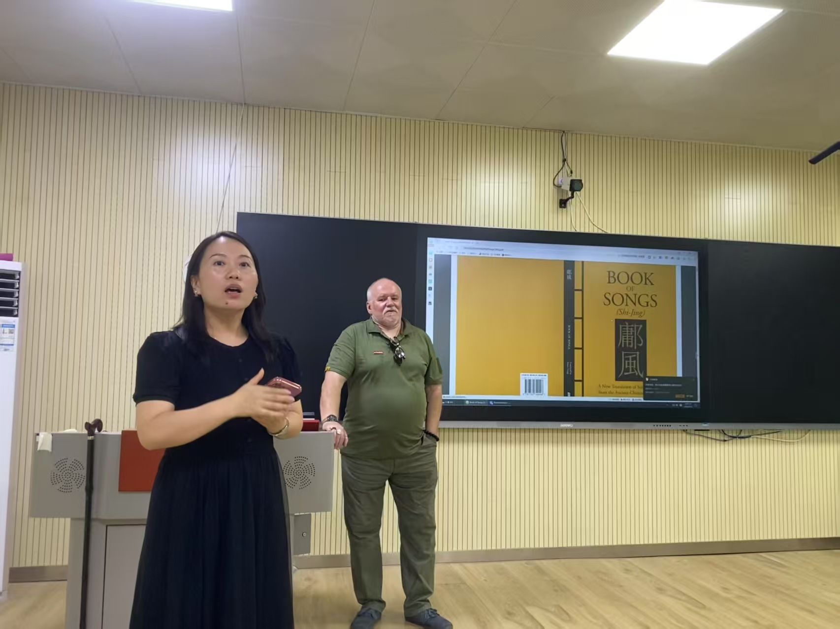 在历时三小时的深度解析中,蒲华杰教授以考古学家的严谨、语言学家的敏锐和诗人的情怀,层层剥解这部传世经典的译介密码。通过梳理《诗经》从周代采诗官的原始采集,到秦汉经学家的整理注疏,再到当代多元阐释的千年流变史,他特别强调:“译者必须成为时空旅行者,既要读懂青铜器铭文的温度,也要听懂竹简帛书的韵律。”