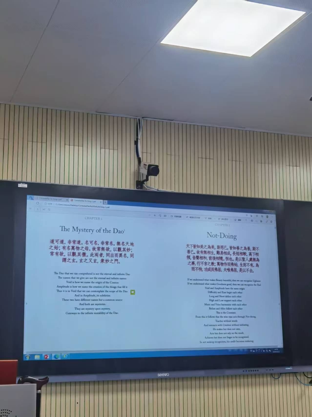 在进行《道德经》章节的案例分析时,蒲华杰教授强调,翻译需平衡诗意与哲理性:既避免过度直译导致晦涩,也需保留“无为”等概念的辩证张力。例如,“绵绵若存”的英译中,选用“silk”(丝绸)意象,因其在西方文化中的轻盈柔韧特质,更易引发共鸣。他指出“道”超越语言命名(“名可名,非常名”),兼具本体论(宇宙本源)与方法论(处世法则)双重维度。西方译者尝试以“way”、“nature”、“truth” 等词转译,但均难以穷尽其内涵——这种不可译性恰是其哲学深邃性的体现。“无为”思想则被解读为“不妄为”而非“不作为”。“智者创造而不占有,行动而不依赖结果”的理念,与西方功利主义形成对照,展现出“看似矛盾实则建设性”的东方智慧。有学者对比学术圈的竞争生态,认为《道德经》倡导的“尽力而为、不抱预期”为当代人提供了一种反内卷的精神资源。