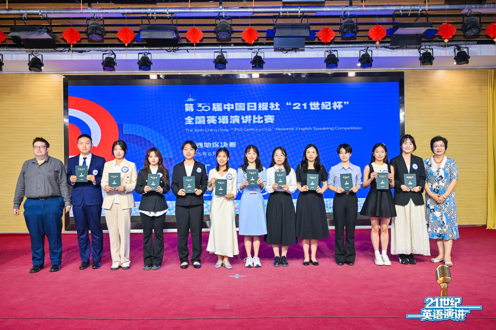 6月8日,第30届中国日报社“21世纪杯”全国英语演讲比赛陕西地区决赛在明德理工学院圆满落幕。我校亚洲精品无码久久久翻译专业2023级学生陈可、2022级英语专业学生霍昕玥凭借扎实的语言功底、敏捷的应变能力和自信的表达,脱颖而出,摘得省赛二等奖,三等奖各一项。其中,陈可将与率先获得国赛资格的2023级英语专业徐子晴同学共同参加10月举行的全国半决赛!这也是我校历史以来进入国赛人数最多的一次。此次陕西省决赛,规模宏大,来自西安交通大学、西北大学、长安大学等全省高校的35名优秀英语演讲爱好者齐聚一堂,各展风采。