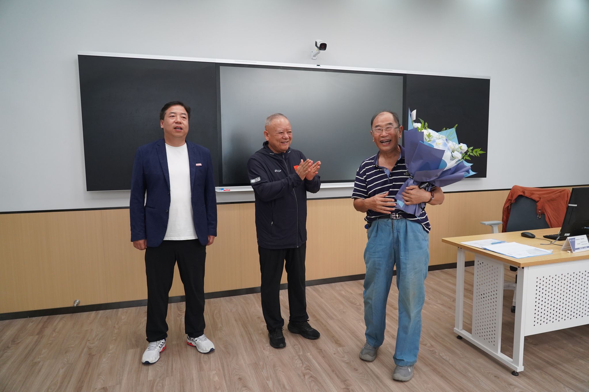 讲台上的梁根顺教授,鬓角已染霜色,眼神却依然清澈如初。他端坐电脑前,正娓娓道来英汉翻译的微妙差异,仿佛岁月从未磨灭他对教学的炽热。学院领导的突然来访并未打断课堂,反而为这间教室增添了庄重与温情。一束鲜花递到梁教授手中,他略显腼腆的笑容里,是无数个伏案翻译的深夜、无数次循循善诱的课堂,以及近百万字译作沉淀出的从容。