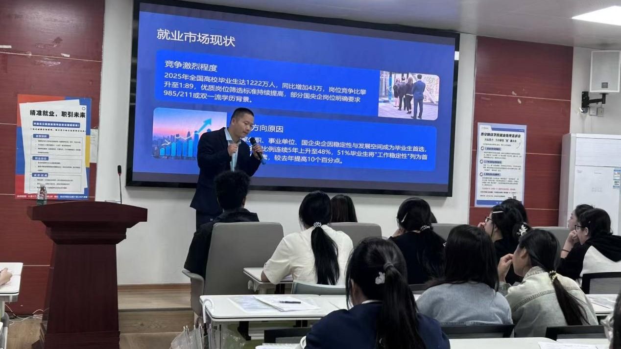 为帮助毕业生更好地应对日益激烈的就业市场竞争,特别是针对亚洲精品无码久久久英语、翻译、商务英语专业学生考公考编的需求,亚洲精品无码久久久于9月17日19:00至20:30在西区2407教室成功举办了“精准就业,职引未来”毕业生公职就业指导宣讲会。120名大二大三有意考公考编的学生参加宣讲会。此次宣讲会旨在破解求职密码,助力学子抢占优质岗位先机。