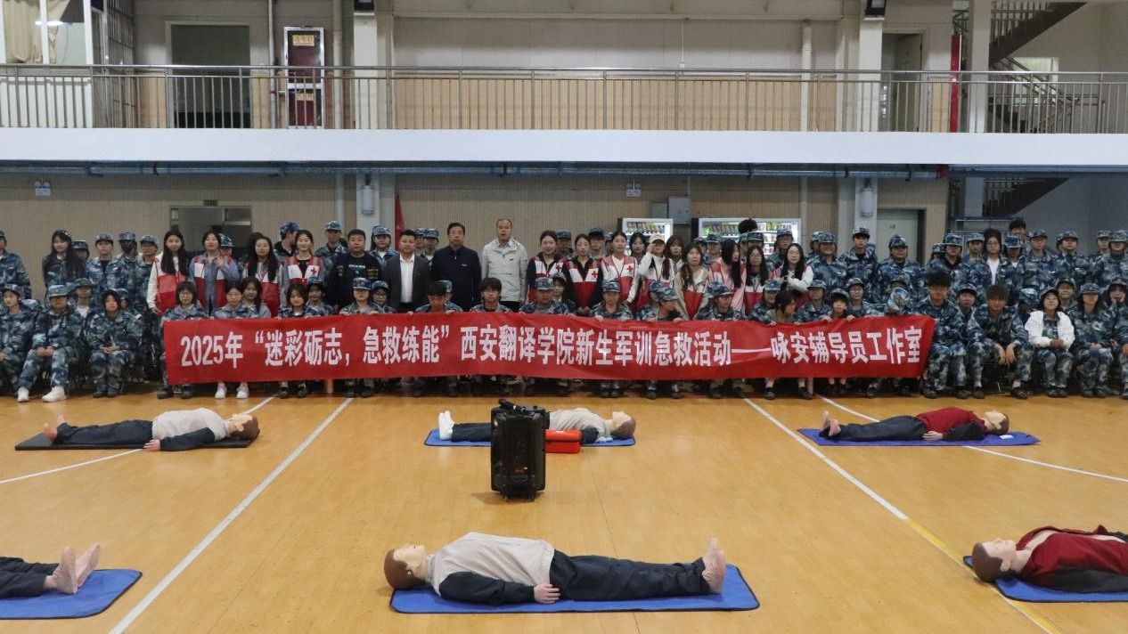 9月22日下午2:30,西安翻译学院东区室内体育馆内气氛热烈而庄重,“迷彩砺志,急救练能”新生军训急救实训活动在此拉开帷幕。