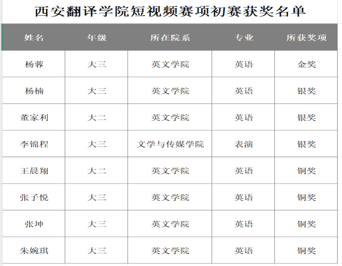 校赛获奖名单