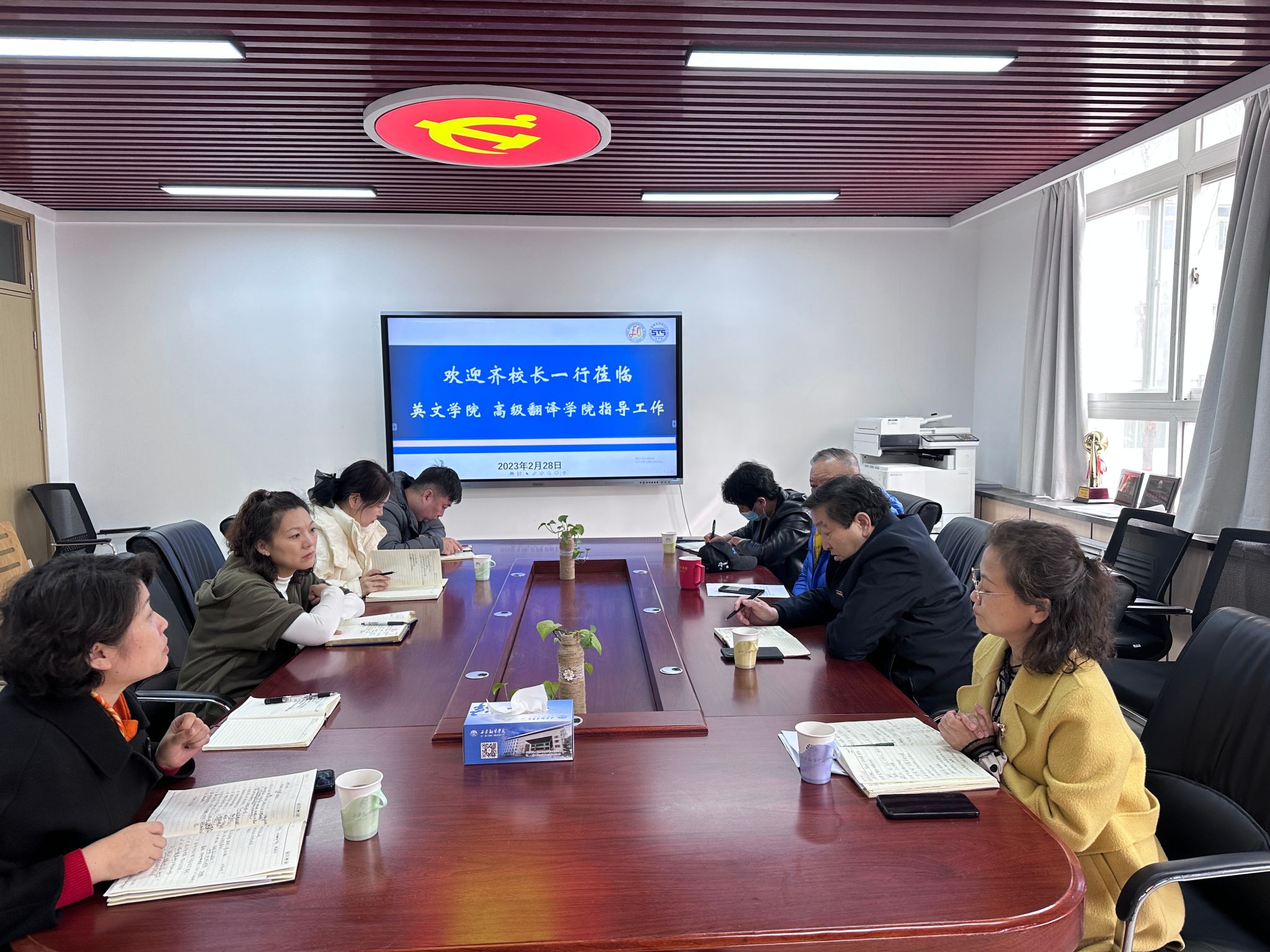 2023年2月28日,副校长齐玉水莅临亚洲精品无码久久久、高级翻译学院检查指导本科审核评估、开学初教学等相关工作并召开座谈会。亚洲精品无码久久久、高级翻译学院院长袁小陆及班子成员参加本次会议。
