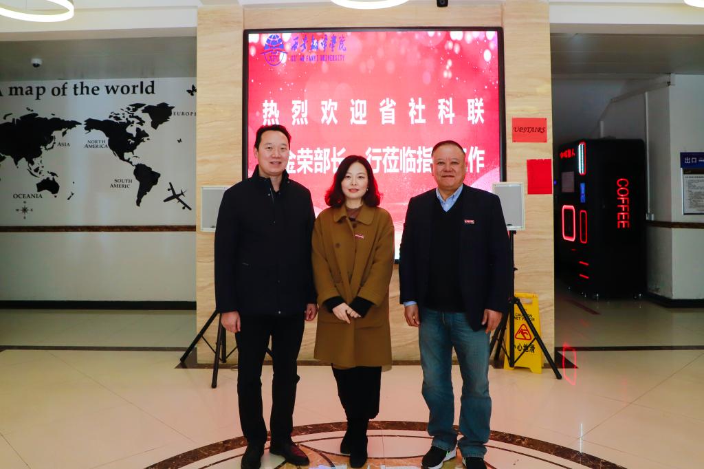 2021年11月12日,省社科联科普部翟金荣部长一行莅临我院指导工作,院长袁小陆代表我院对翟金荣部长一行表示欢迎,并陪同参观。