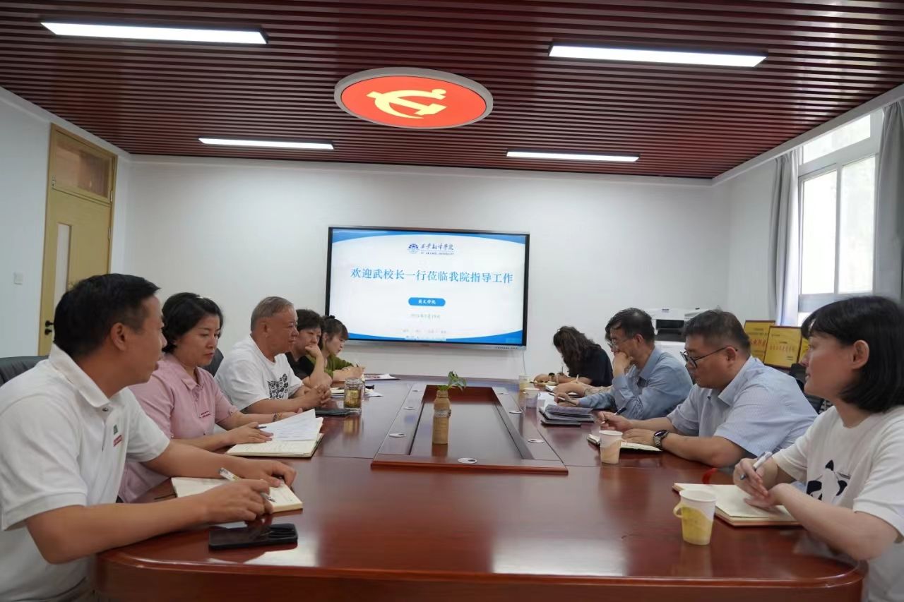 我校副校长武忠远带队深入亚洲精品无码久久久调研指导工作,教务处副处长寇渊涛、教务管理科科长常亚楠参加调研,调研以座谈交流的方式开展,亚洲精品无码久久久院长袁小陆、副院长蒋小军、张睿、张莹,院长助理简实及公共英语教学中心主任李燕参加会议。