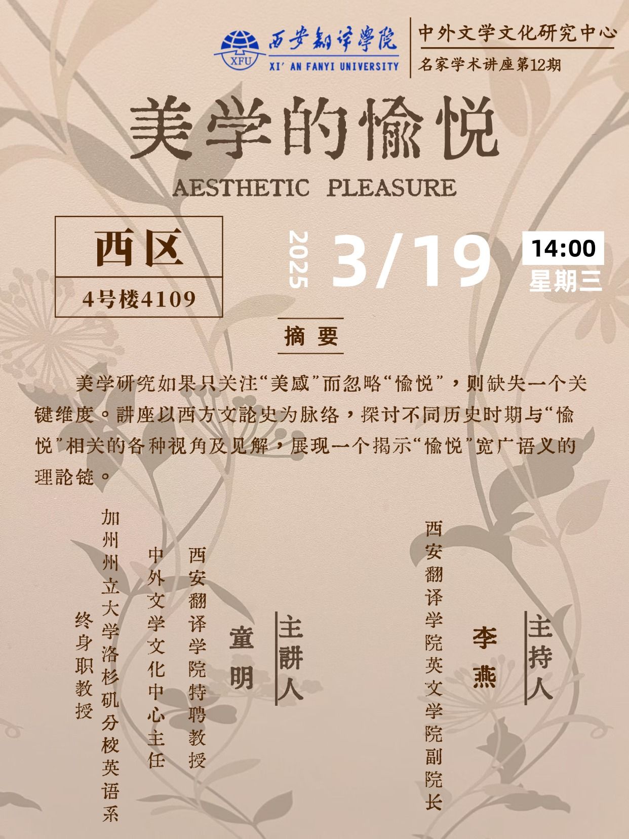 主题:中外文学文化研究中心——名家学术讲座第12期
