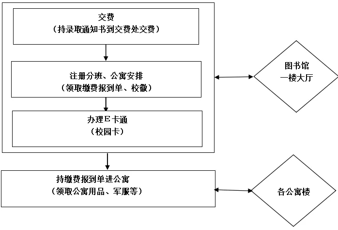 1.已经办理网上缴费学生凭网上缴费报到单进公寓办理入住手续后,到辅导员处领取校园卡和校徽。