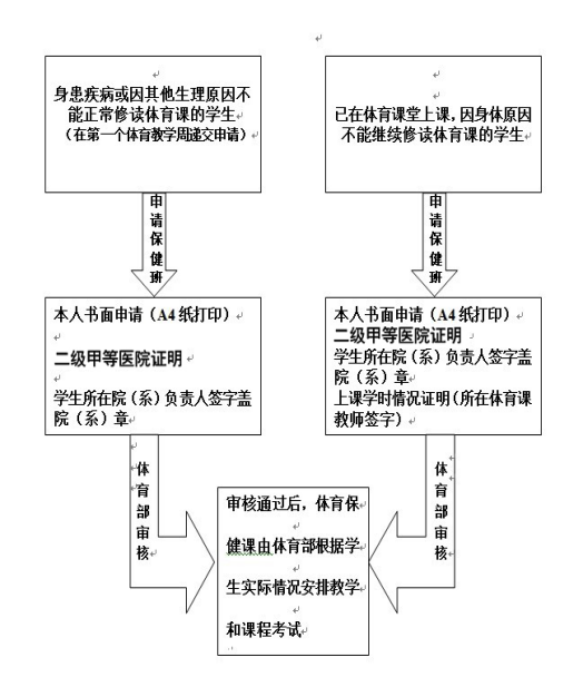 (6)部分身体异常、特型和病、残、弱及个别等特殊群体的学生,无法完成体育选项课授课内容的学生,在符合选报体育保健课条件下,可选报体育保健课。(上课时需携带二级甲等以上医院证明,请谨慎选报。)
