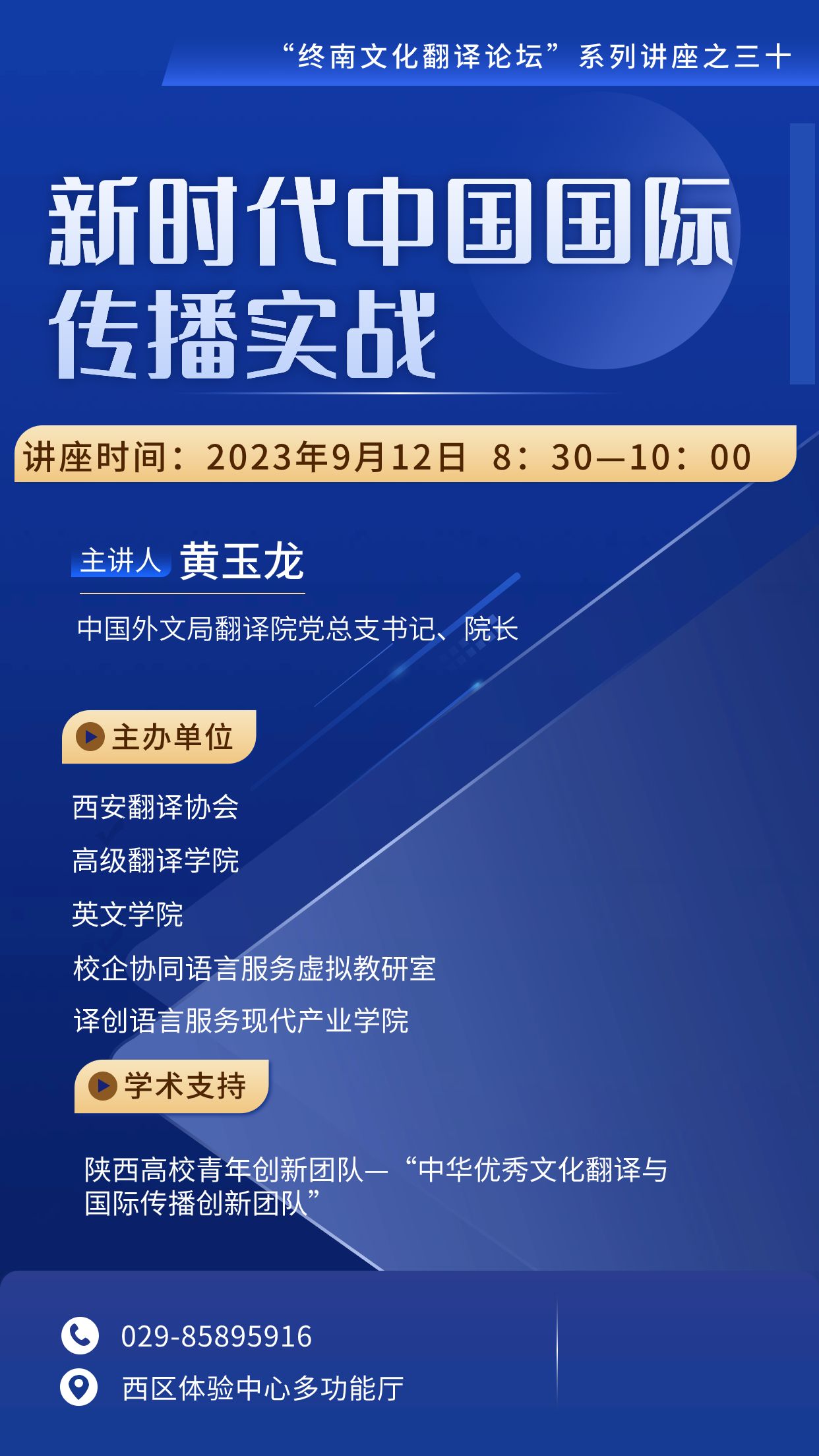 讲座主题:“终南文化翻译论坛”系列讲座--新时代中国国际传播实战