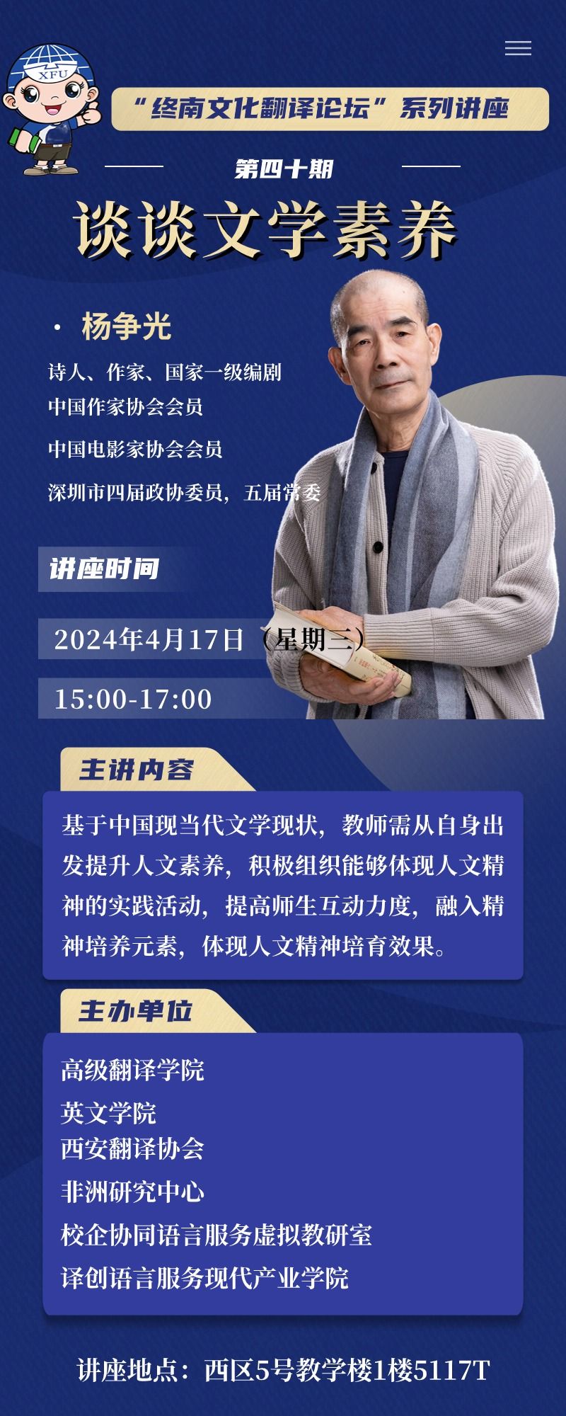 讲座主题:“终南文化翻译论坛”系列讲座第四十期——谈谈文学素养