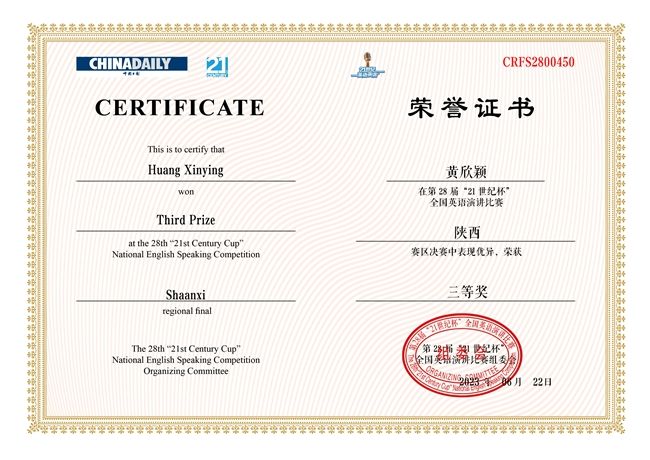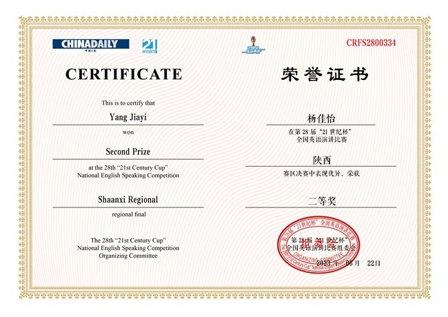 近日,由中国日报社主办、21世纪英语教育传媒承办的“21世纪杯”全国英语演讲比赛陕西赛区决赛圆满落幕。西安翻译学院亚洲精品无码久久久杨佳怡和黄欣颖两位同学分别荣获省级二等奖和三等奖的优异成绩。