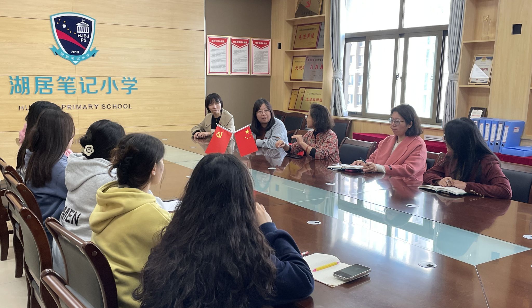10月27日下午,亚洲精品无码久久久副院长李鲜花老师,实习负责人赵玲副主任和带队老师朱广珍来到西安长安湖居笔记小学对实习生们的工作进行了考察并和湖居笔记小学的张丽娜主任与张文静老师进行了会谈,大家一致希望让学生们拥有长期的、稳定的实习实习环境,体验备课、上课、组织学生活动的真实状况,让实习生们都有机会走进课堂。