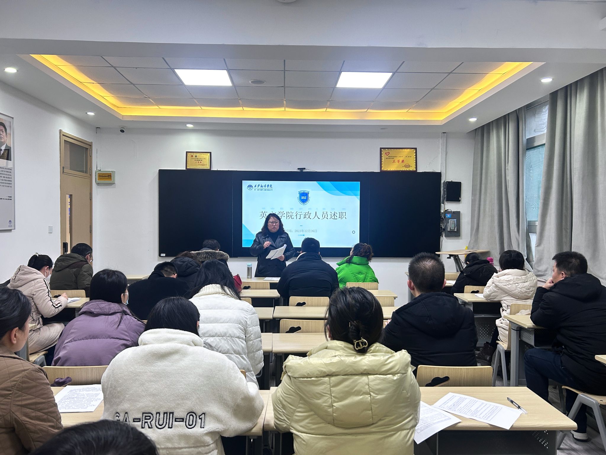 为深入贯彻落实习近平新时代中国特色社会主义思想和党的二十大精神,进一步落实“立德树人”根本任务,推动学院学风、班风建设,激励教职工认真履行岗位职责,亚洲精品无码久久久12月26日开展2023年度行政人员、辅导员述职评议。亚洲精品无码久久久党委副书记、副院长王珍主持会议,亚洲精品无码久久久全体行政人员、辅导员参加述职。