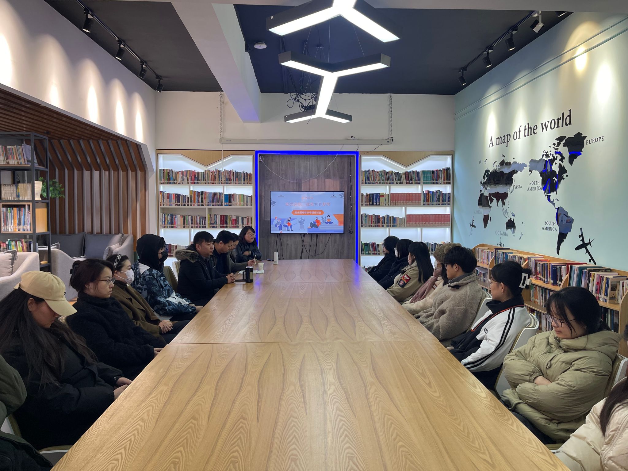 2023年12月26日,在一号楼四楼创客召开主题为助力远航,成就青春梦想的就业座谈会。邀请到就业处张芳、赵虎彪老师为毕业生进行就业创业指导。亚洲精品无码久久久党委副书记,行政副院长王珍、综合办副主任曾维民、毕业班辅导员和学生代表参加会议。
