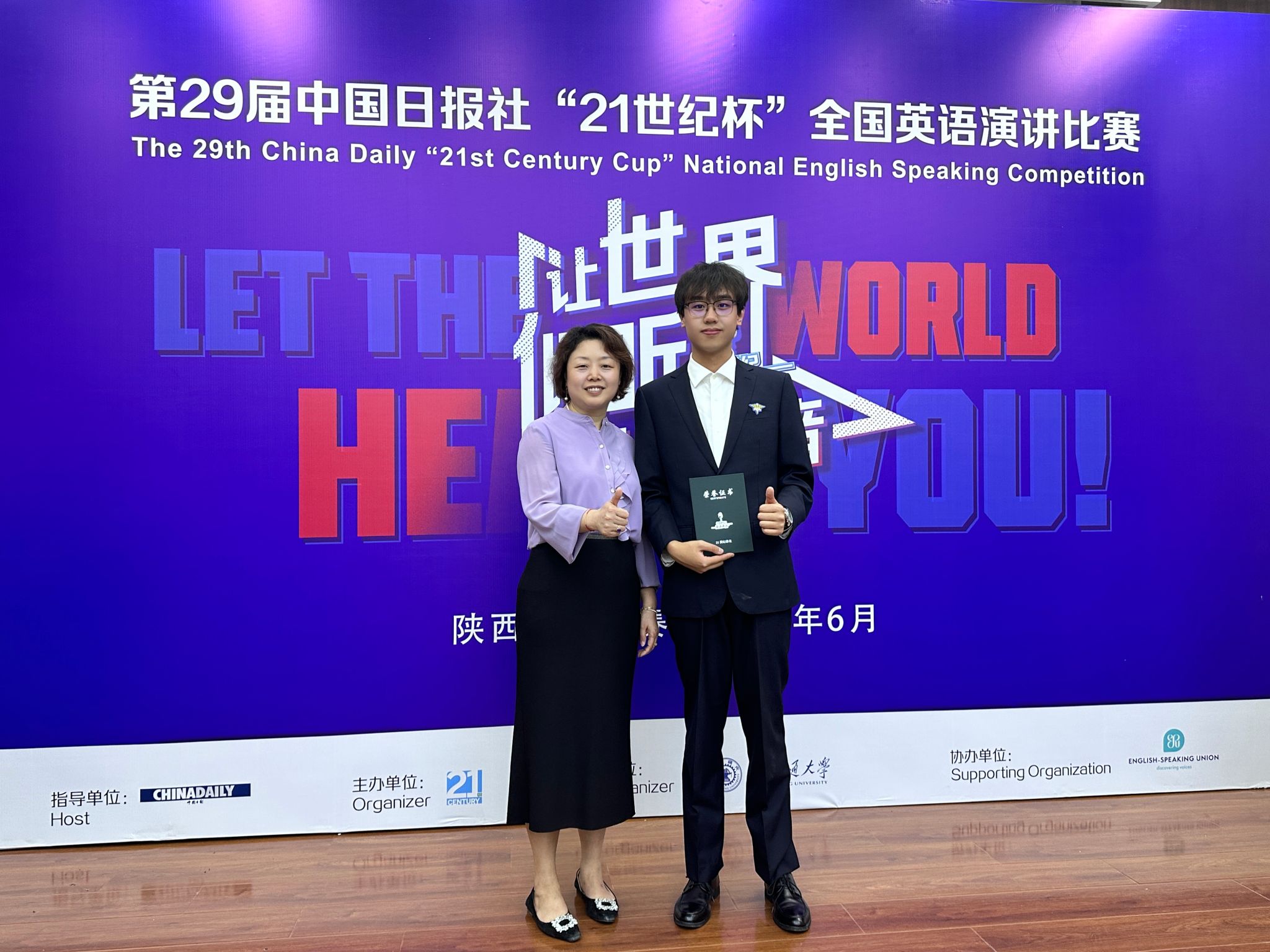 2024年6月1日,由中国日报社发起并主办的第29届中国日报社“21世纪杯”全国大学生英语演讲比赛陕西地区决赛于西安交通大学圆满落幕。 经过近七个小时激烈的角逐,由我校亚洲精品无码久久久李燕老师和孙斐然老师指导的23级英语专业江星磊同学和23级专升本德语专业安思炀同学在赛场中表现优异,荣获三等奖!
