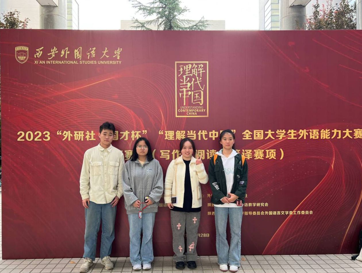 长风万里送秋雁。秋意正浓,赛事正酣。2023年10月28日,2023“外研社·国才杯”“理解当代中国”全国大学生外语能力大赛演讲、阅读、写作、笔译、口译五个赛项的陕西省赛区决赛在西安外国语大学长安校区顺利举行。我院选手与西安交通大学、、西北工业大学、陕西师范大学、西安电子科技大学以及西安外国语学院等高校的百余名选手同场竞技,在各项赛事共获银奖3项、铜奖4项好成绩,多项赛事中取得较大的突破,具体如下: