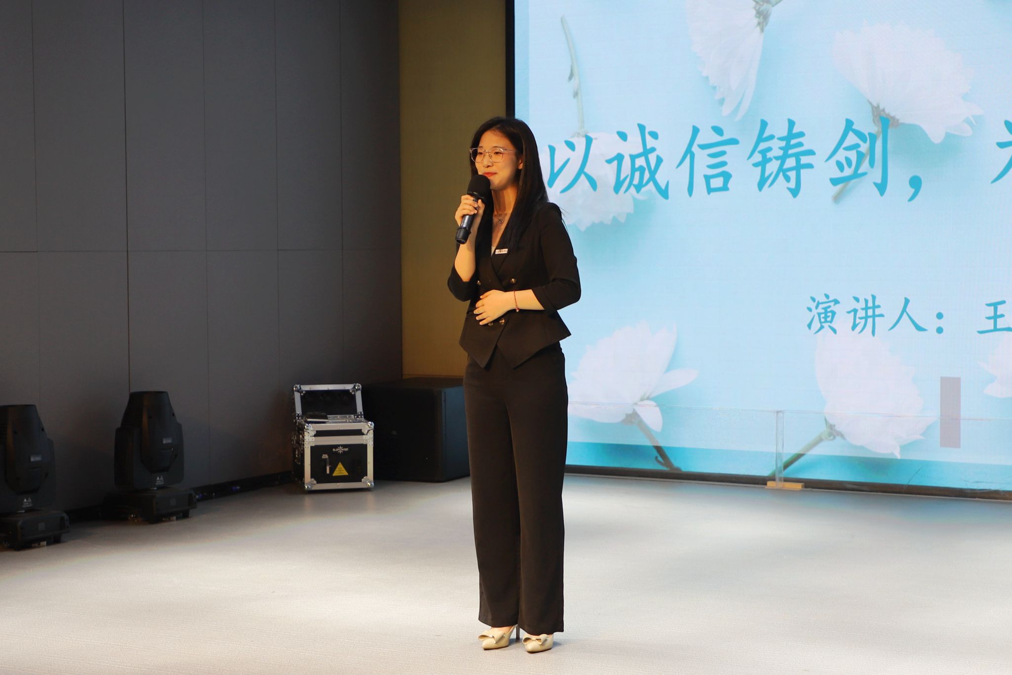 本次比赛在富有青春活力的开场舞《Fallin out》中拉开帷幕。经过前期激烈角逐,共有十名同学入围决赛。本次比赛从主题内容、语言表达、整体印象、才艺展示、演讲时间五方面进行评比。一号选手岳欣带来《做一个播种诚信的人》,选手精神饱满、大方自信,演讲内容紧扣主题,她以身边同学朴实无华的小事为例,向在场观众讲述了她对诚信教育的看法,阐述了诚信教育在我校校园文化建设、学生综合素质等方面的作用,彰显了我校开展诚信教育的成果。最后,她用一首悦耳动听的歌曲《征程》结束了演讲,其稳定的台风获得了评委老师一致好评。六号选手周巧雨带来《诚立天下,信赢未来》,她以“守信用、重承诺”为出发点,呼吁大家坚守信仰、树立信誉、言行一致。她侃侃而谈、掷地有声,通过引经据典,追溯中华五千年文化,将中国礼仪之邦的形象体现得淋漓尽致,周巧雨所流露出的真情实感引起全场的共鸣。七号选手段俊毅带来的《君之诚 君则赢 君则立》,他紧紧围绕“以诚待人,以信立身”主题,将对国家资助政策的感恩之情融入演讲当中,声情并茂地展现了新时代青年学生热爱祖国、知恩感恩、诚信拼搏、积极上进的良好精神风貌。