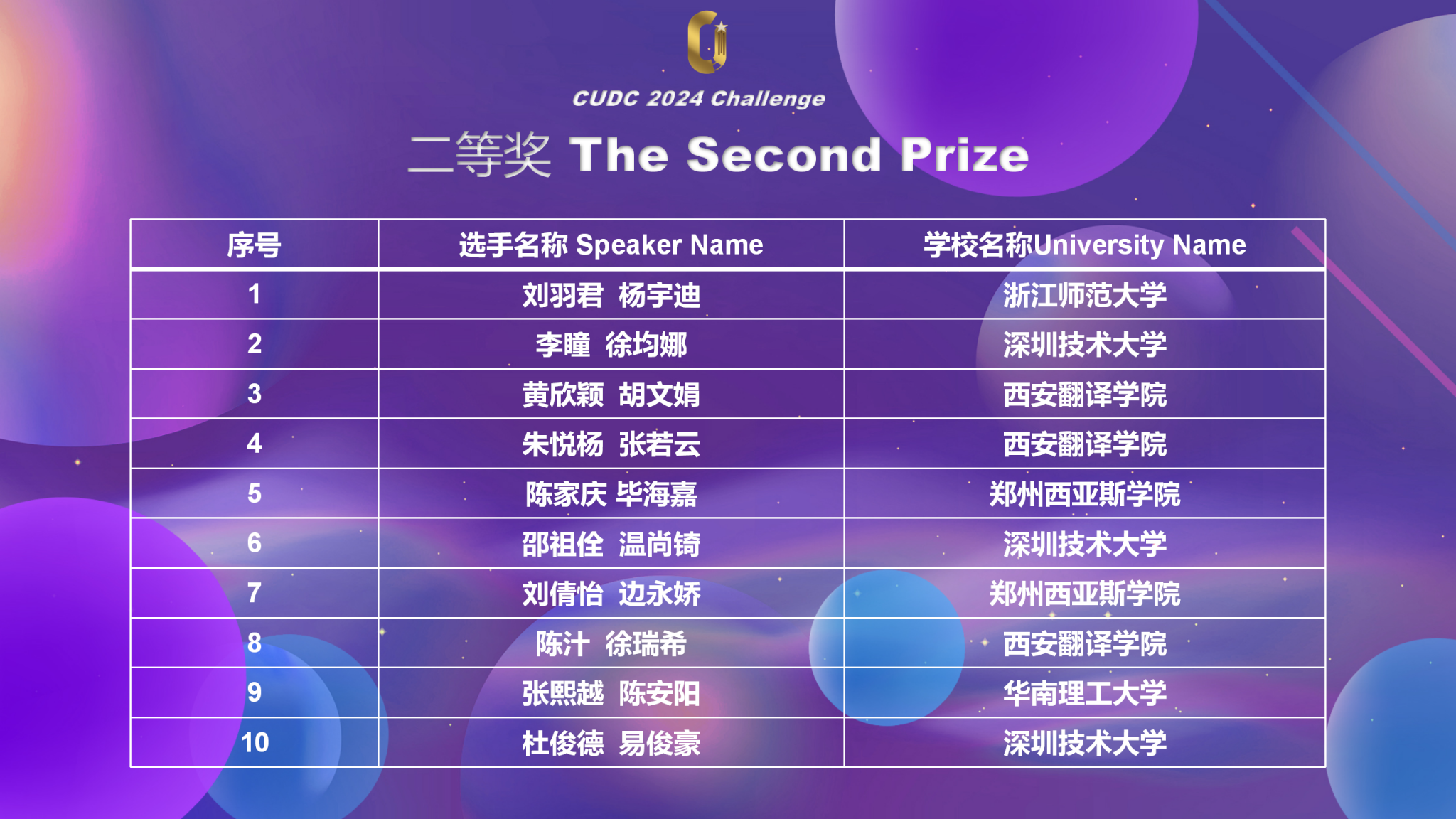 2024年7月13日至14日,2024 CUDC中国大学生英语辩论赛外卡挑战赛在线上如期举行。我校亚洲精品无码久久久派出五支队伍与北京外国语大学,浙江师范大学,浙江外国语学院、澳门科技大学、华东理工大学等多所高校展开激烈角逐,历经五轮循环赛,最终2021级学生黄欣颖,2022级学生胡文娟、朱悦杨、张若云,2023级学生陈汁、徐瑞希斩获二等奖,2023级学生施钰萌、龙雨芳、李佳一、周明妤获得三等奖。
