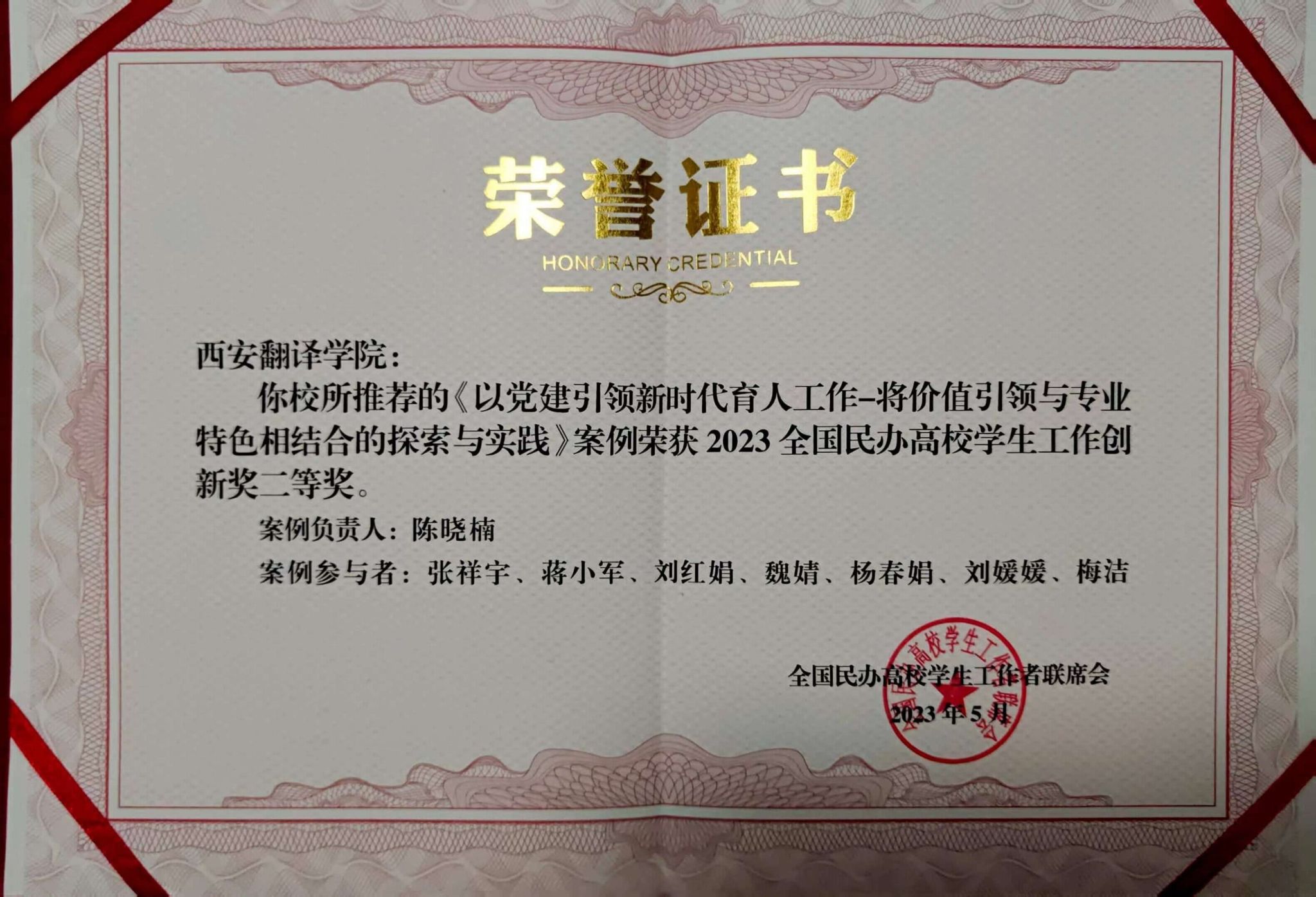 为贯彻落实党的二十大精神,落实“以学生为中心”的教育理念,加强典型经验和创新举措的交流,5月11日-13日,由全国民办高校学生工作者联席会主办的“第十届全国民办高校学生工作创新研讨会”在武汉隆重举行。来自全国近百所民办高校、300多位学生工作者参加会议。高级翻译学院副院长蒋小军,辅导员代表陈晓楠、魏婧参会。