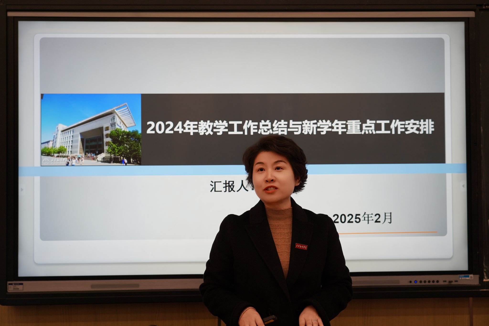 教学副院长李燕率先发言,对 2024 学年学院的教学工作进行了全面总结。在教学方面,李院长指出,过去一年学院教学秩序井然,教学质量稳步提升,学生在各类学科竞赛中屡获佳绩。同时,学院积极推进教学改革,多项课程改革项目取得阶段性成果,为人才培养质量的提高奠定了坚实基础。谈及本年度重点工作,她号召全院教师要高度重视,注重教学质量、钻研教研方向,全力以赴为申硕工作创造有利条件。