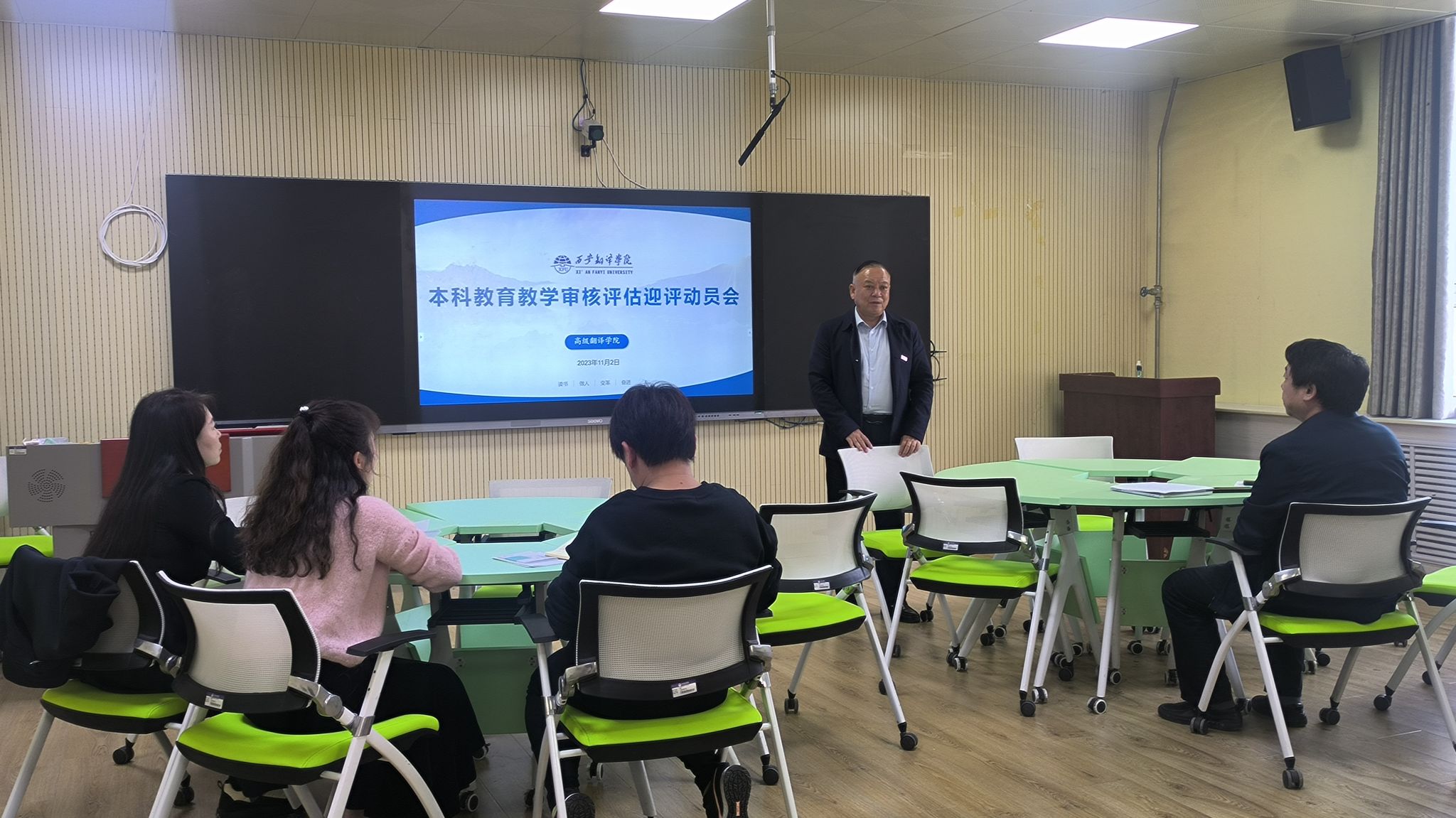 为全力做好本科教育教学审核评估工作,11月2日中午,高级翻译学院召开本科教育教学审核评估迎评动员会。院长袁小陆作动员部署,副院长张睿解读审核评估政策和传达学校动员会会议精神,全体教职工参加,党委书记兼行政副院长蒋小军主持并讲话。