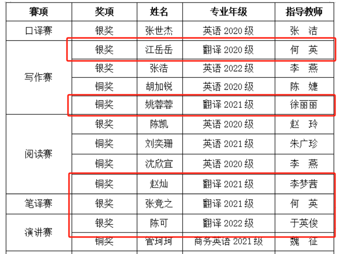 长风万里送秋雁。秋意正浓,赛事正酣。10月15日-11月5日,2023“外研社·国才杯”“理解当代中国”全国大学生外语能力大赛陕西省省赛多语种赛道和英文赛道分别在线上及西安外国语大学长安校区顺利举行。我院选手与西安交通大学、西北工业大学、陕西师范大学、西安电子科技大学以及西安外国语学院等高校的百余名选手同场竞技,在多项赛事中取得优异成绩,共获银奖3项、铜奖2项。